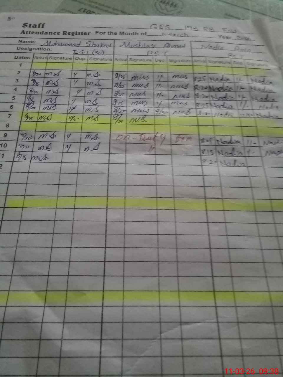 | 33**** | Kh**** Ba**** | PST Science/Maths | Regular | 0 | 0 | 0 | 0 | 0 | 0 | 0 | 0 | 0 | Exam Duty |
