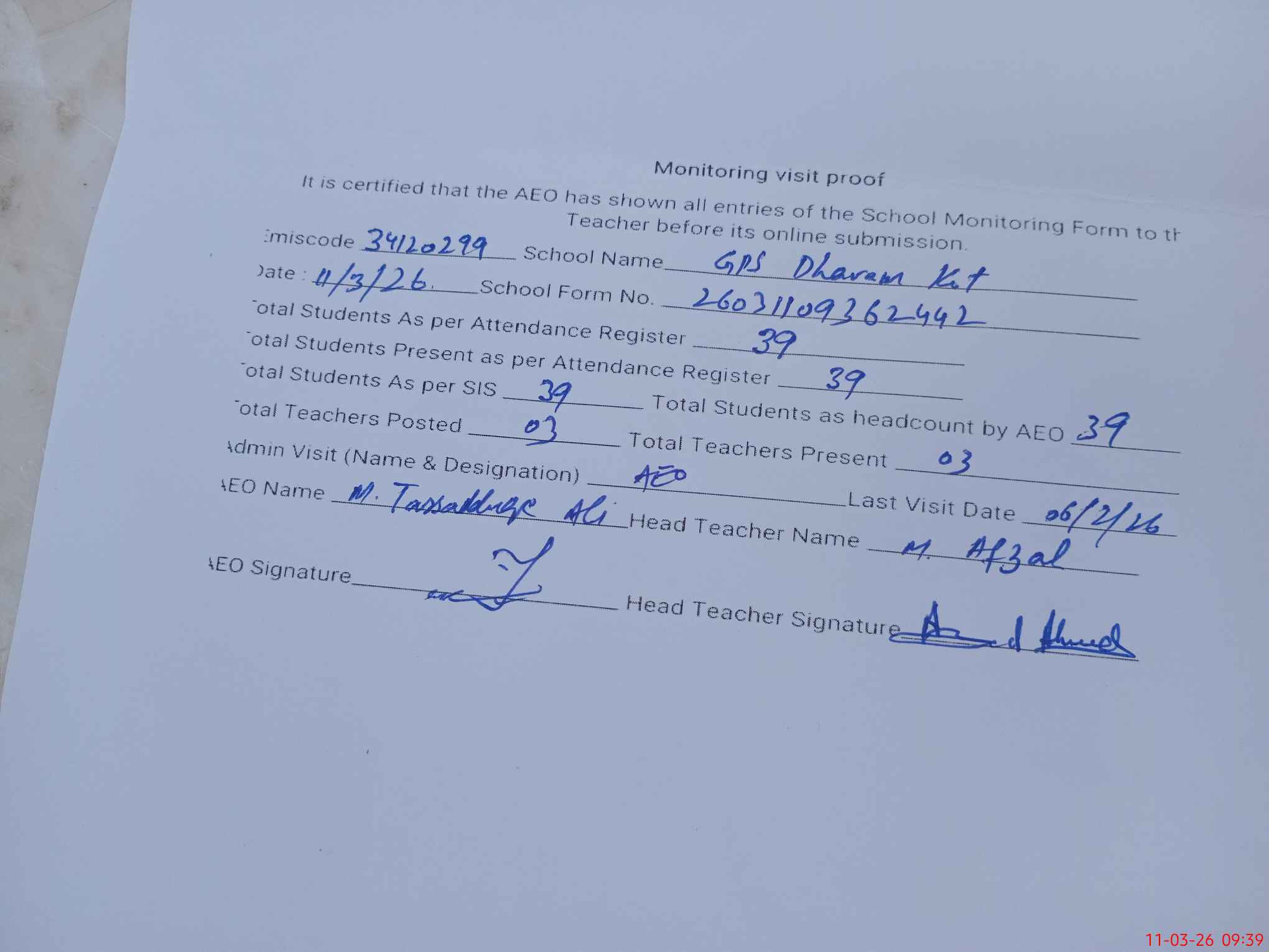 | EMIS Code: 34120299 | Name of School: GPS DHARAM KOT | |||