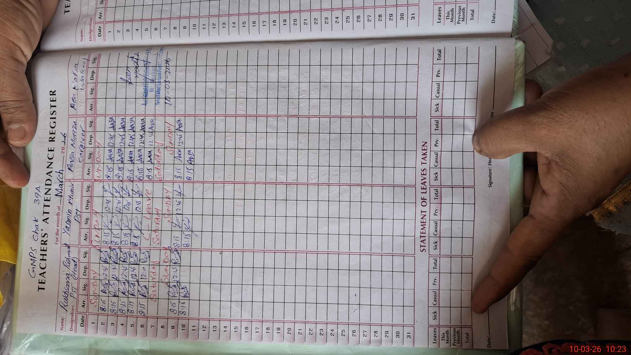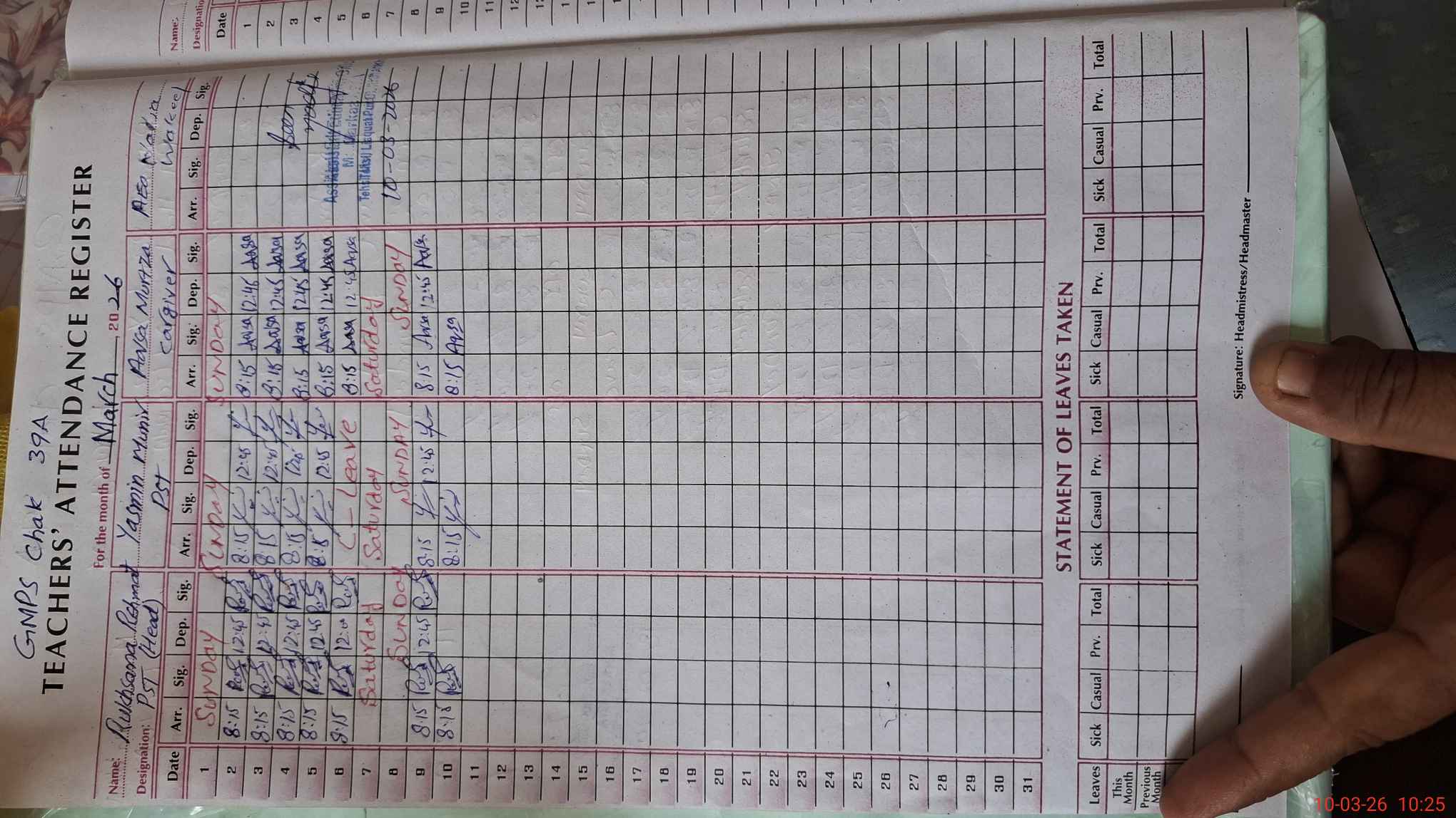 | Name: RU**** RE**** Designation: (School Headmaster's/Headmistress's) PST Phone/Cell Number: 03**** |