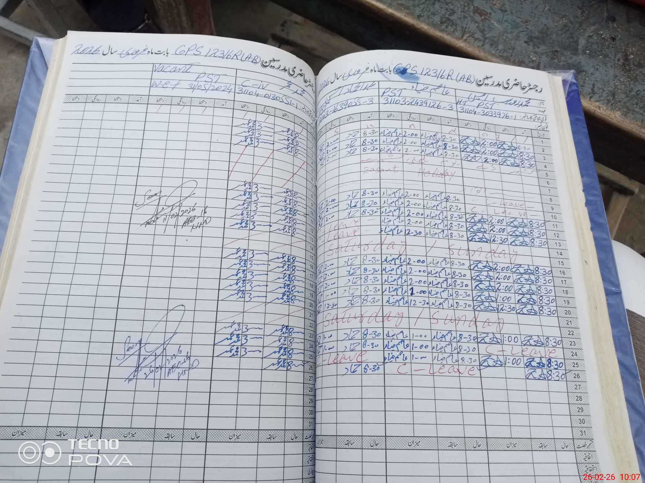 | Leave | Duty | Absent | Maternity | Medical | Ex- Pak |
