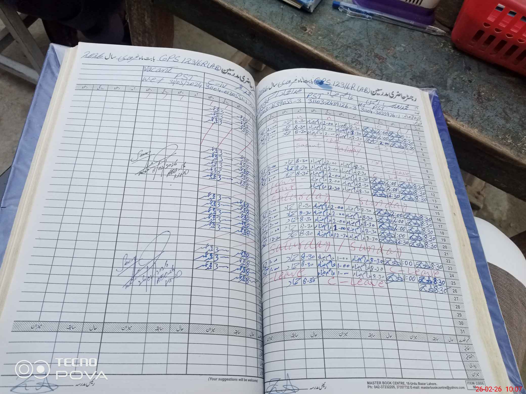 | CNIC | Full Name | Designation | R/C | Absence During Last Calender Month |