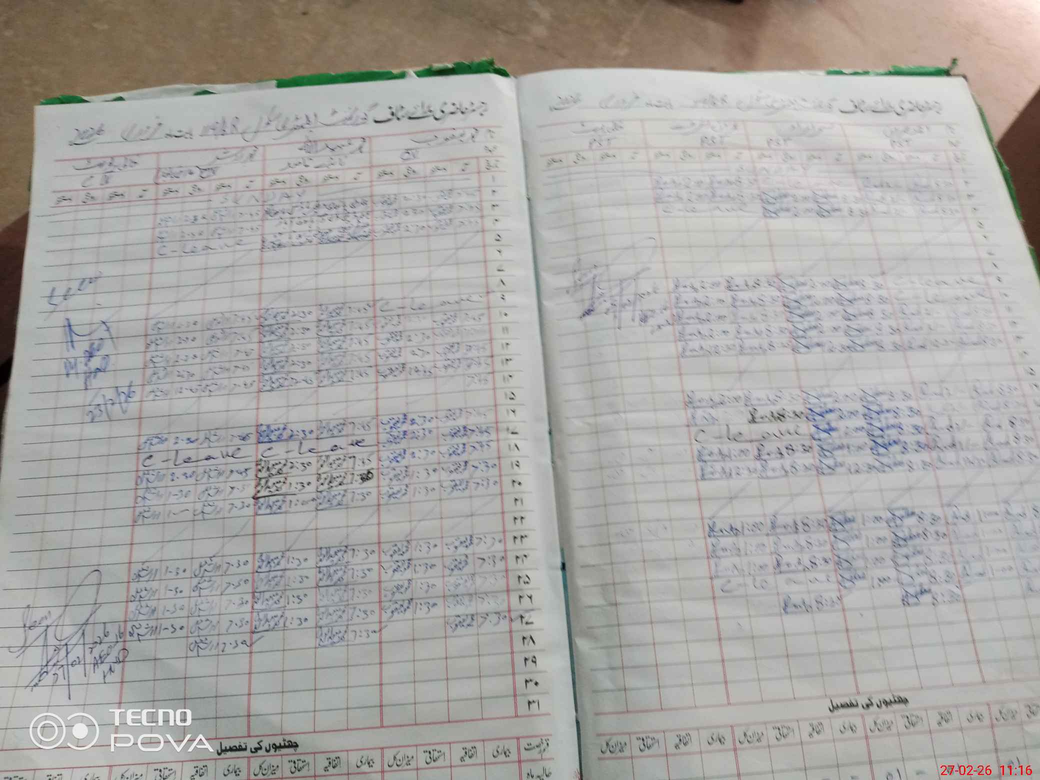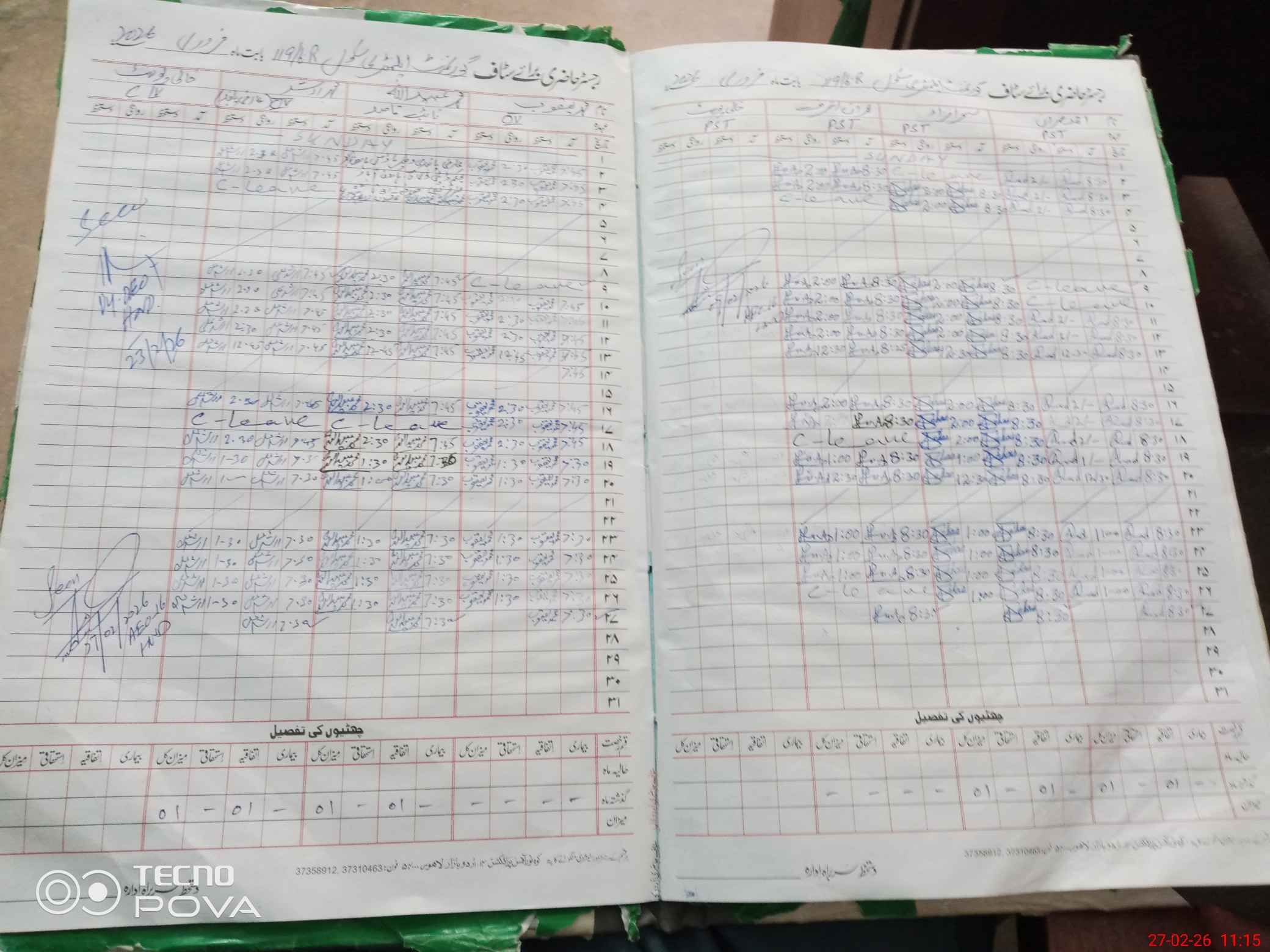 | CNIC | Full Name | Designation | R/C | Absence During Last Calender Month |