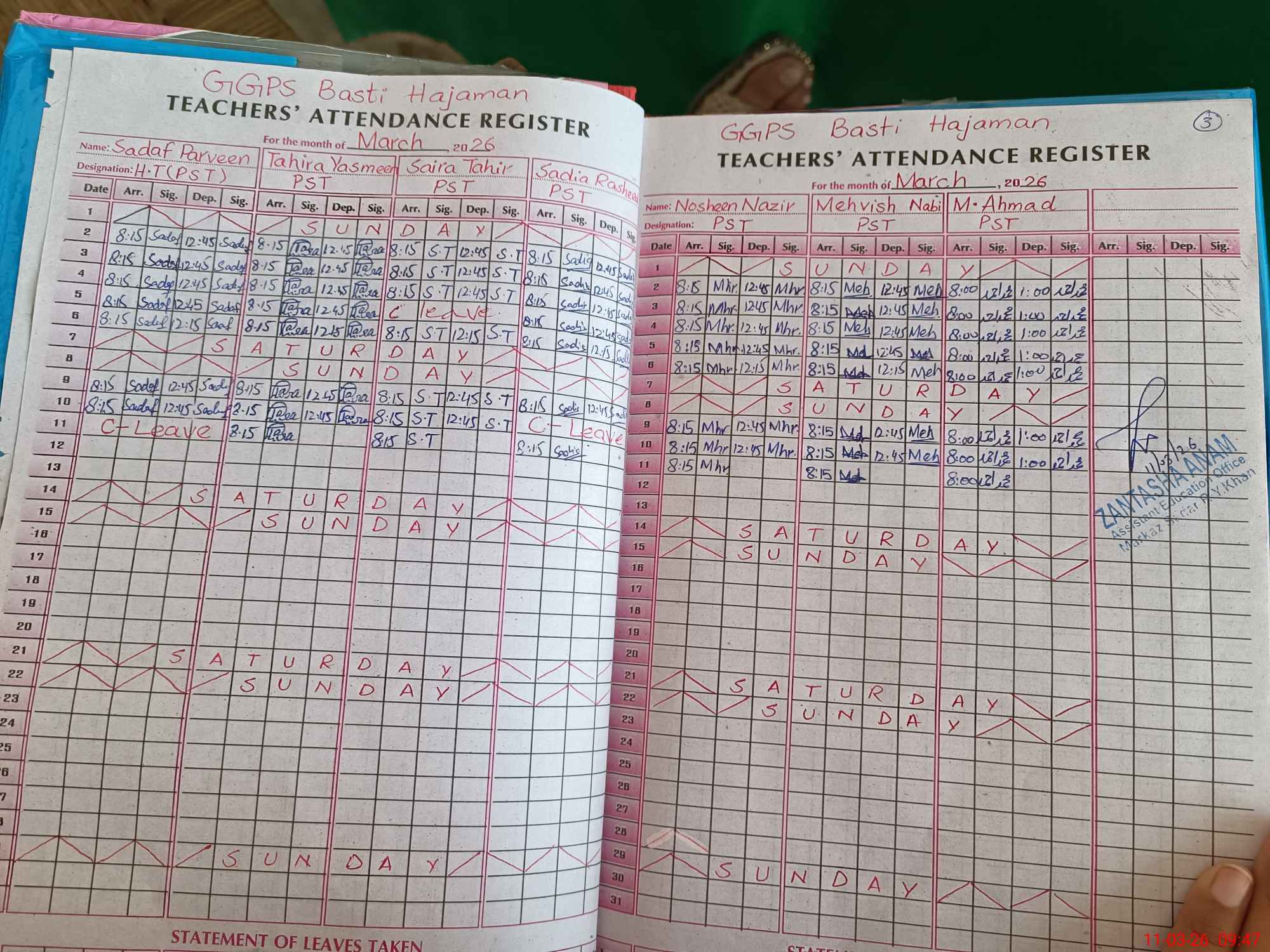 | Monitoring Date: 11-03-2026 | Start Time: 11-03-2026 09:25 AM | End Time: 11-03-2026 09:47 AM | Name of MEA: Za**** An**** | |