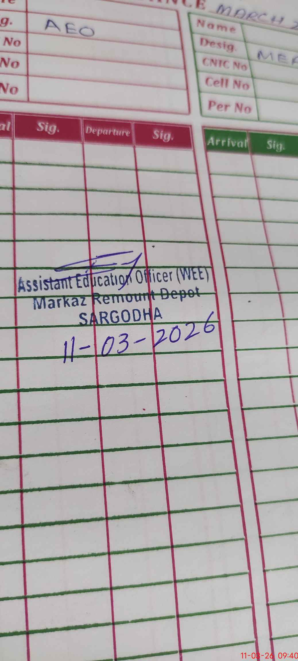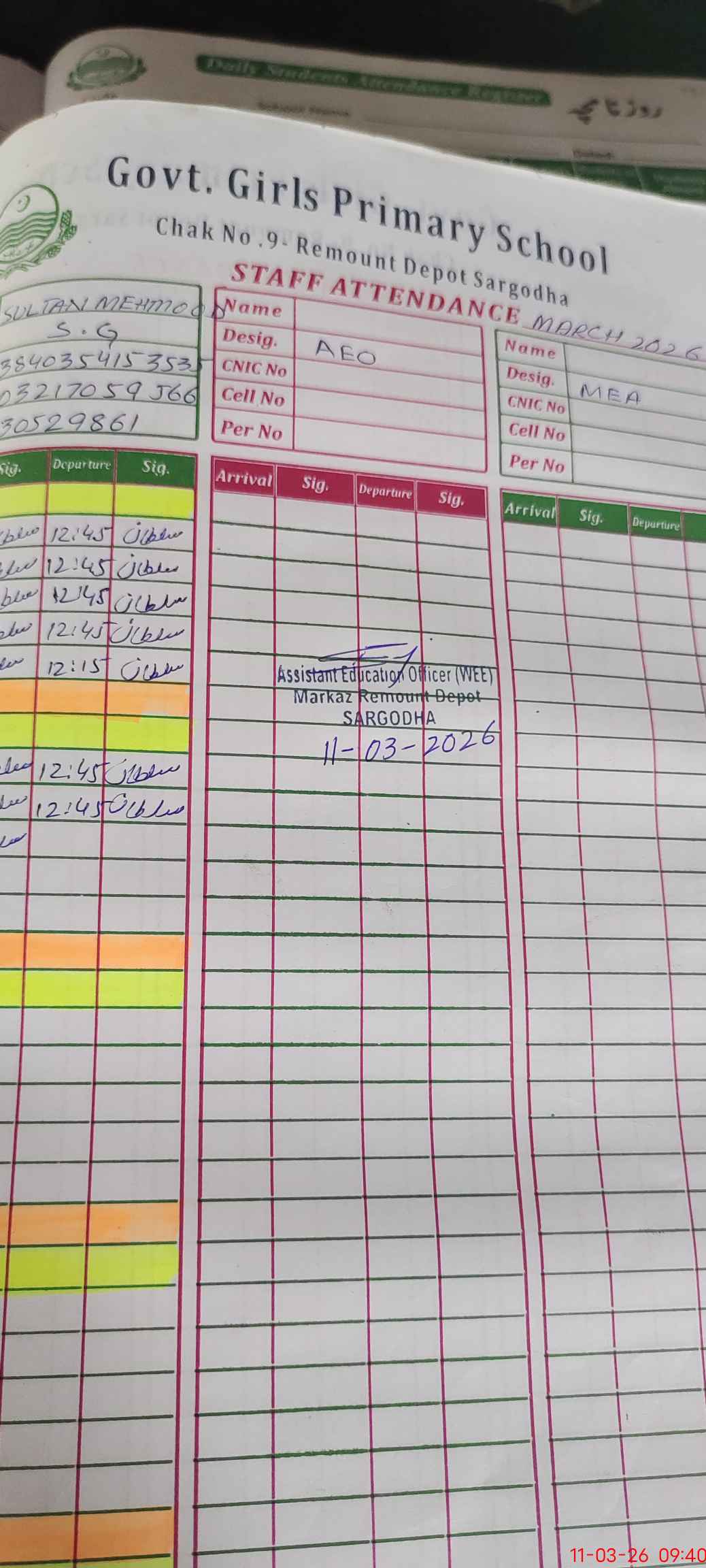 | Name of AEO: | AEO Contact No.: | MEA Phone#: 03**** | ||