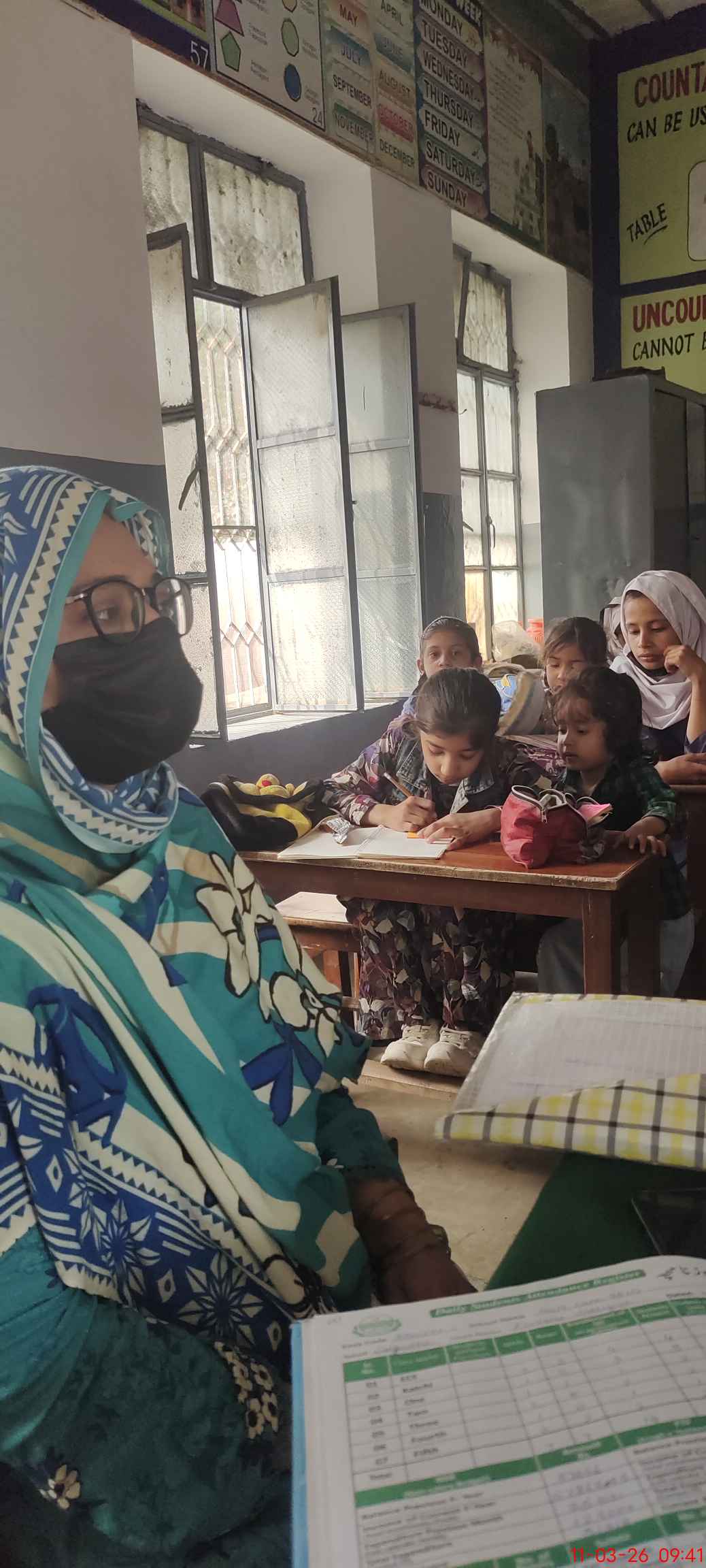 | Total no. of Classrooms: 2 No. of Classrooms Used for Teaching: 2 No. of Classrooms Storing Old Furniture, FTBs, etc: 0Comments if Any: Okay |