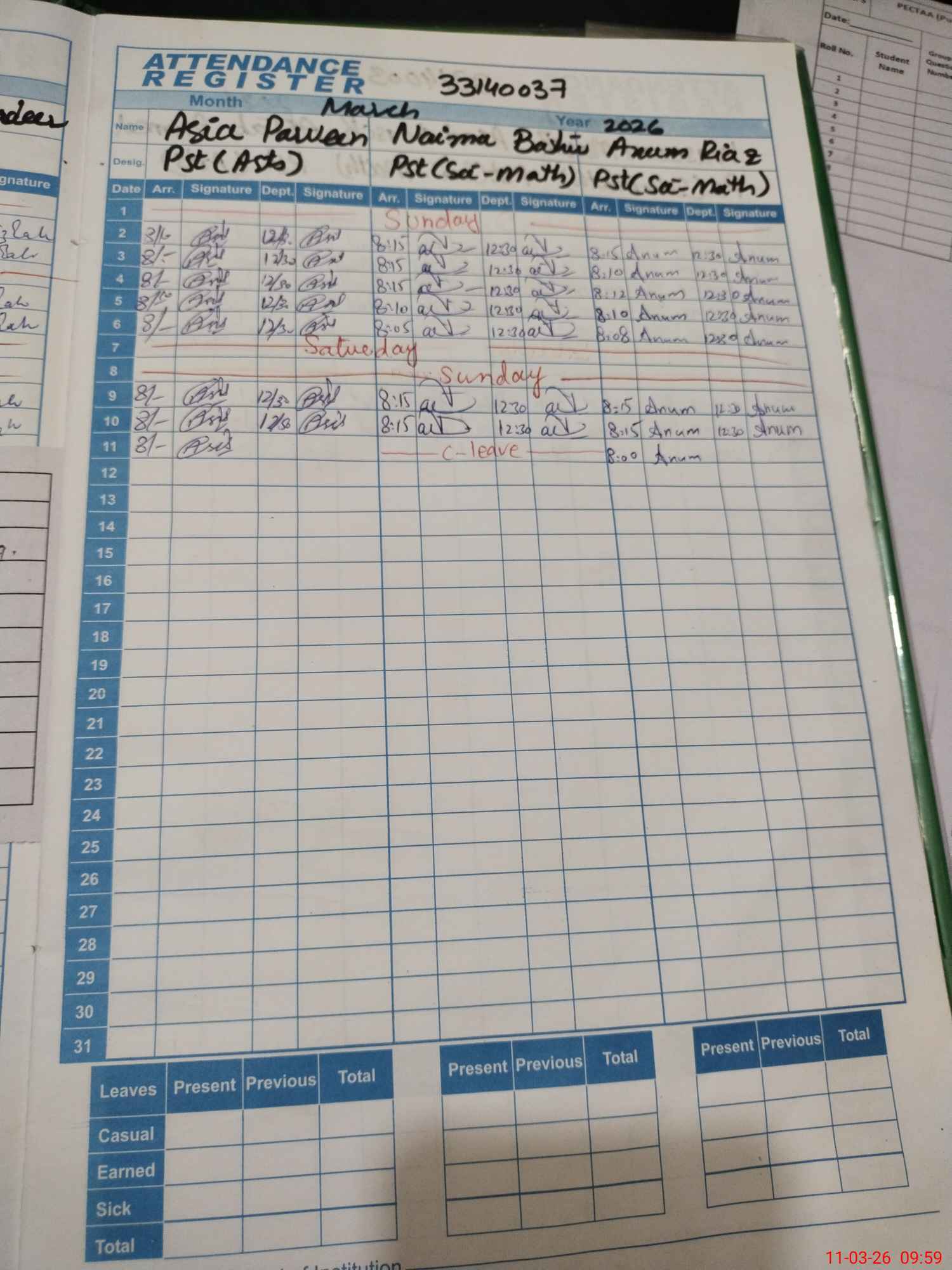 | 33**** | Na**** Ba**** | PST Science/Maths | Regular | 0 | 0 | 0 | 0 | 0 | 0 | 0 | 0 | 0 | Casual |