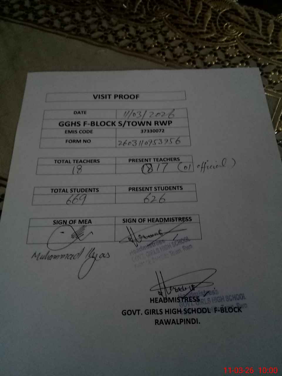 | EMIS Code: 37330072 | Name of School: GGHS F BLOCK RWP | |||