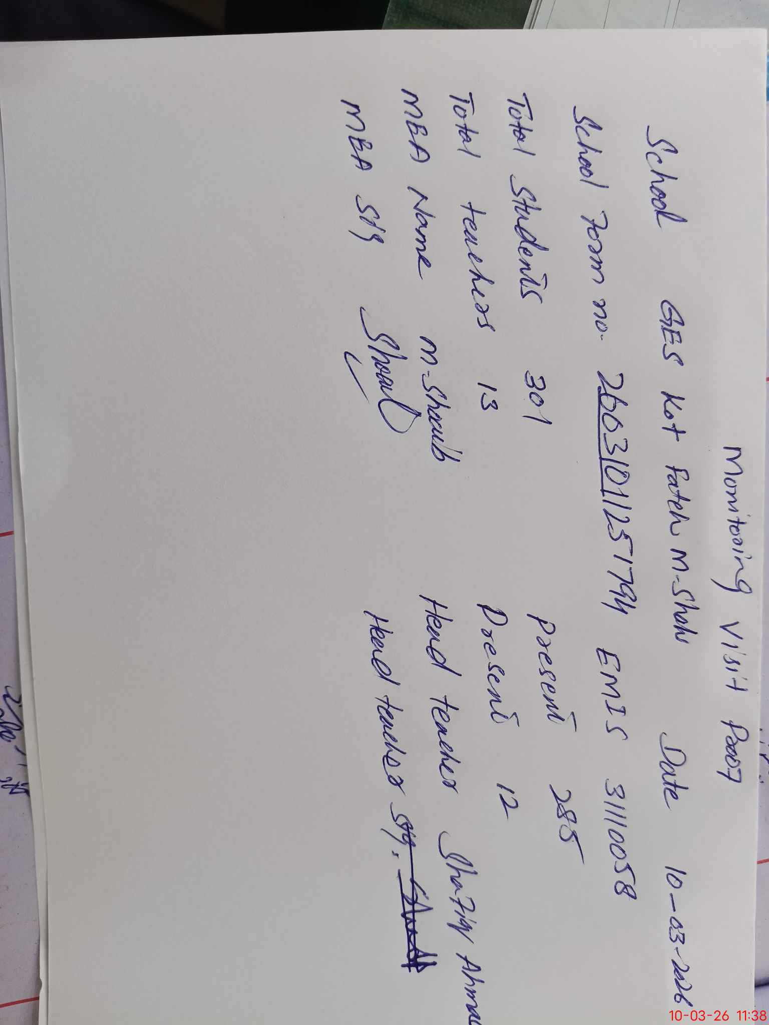 | EMIS Code: 31110058 | Name of School: GES KOT FATEH MUHAMMAD SHAH | |||