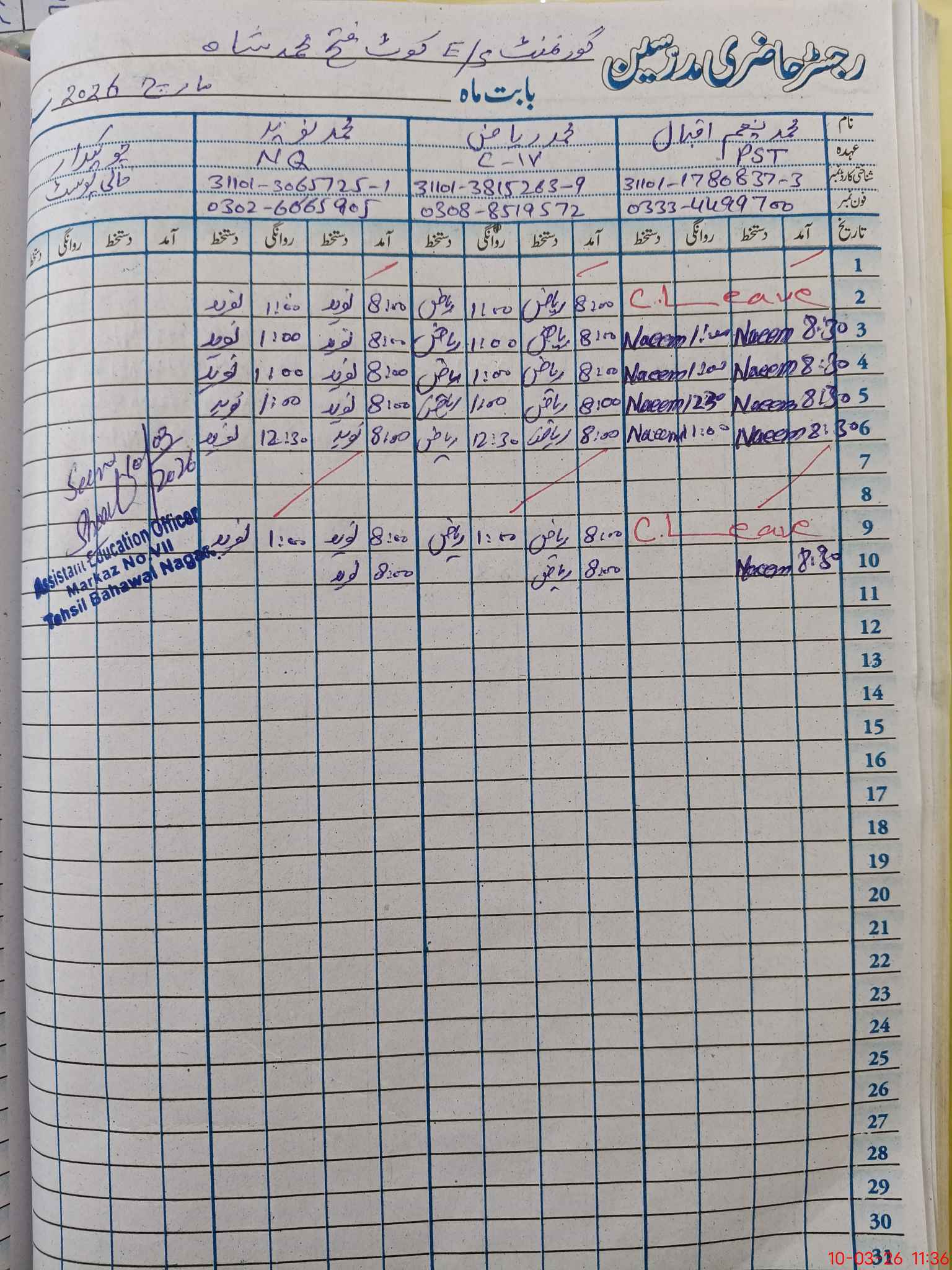 | Name: SH**** AH**** Designation: (School Headmaster's/Headmistress's) S.S.T.(Arts) Phone/Cell Number: 03**** |