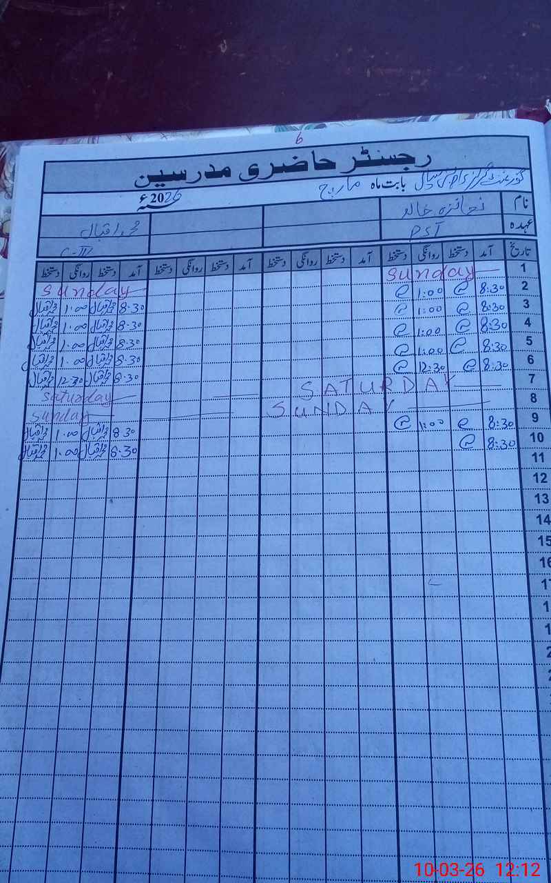 | Name: RA**** MA**** Designation: (School Headmaster's/Headmistress's) PST Phone/Cell Number: 03**** |