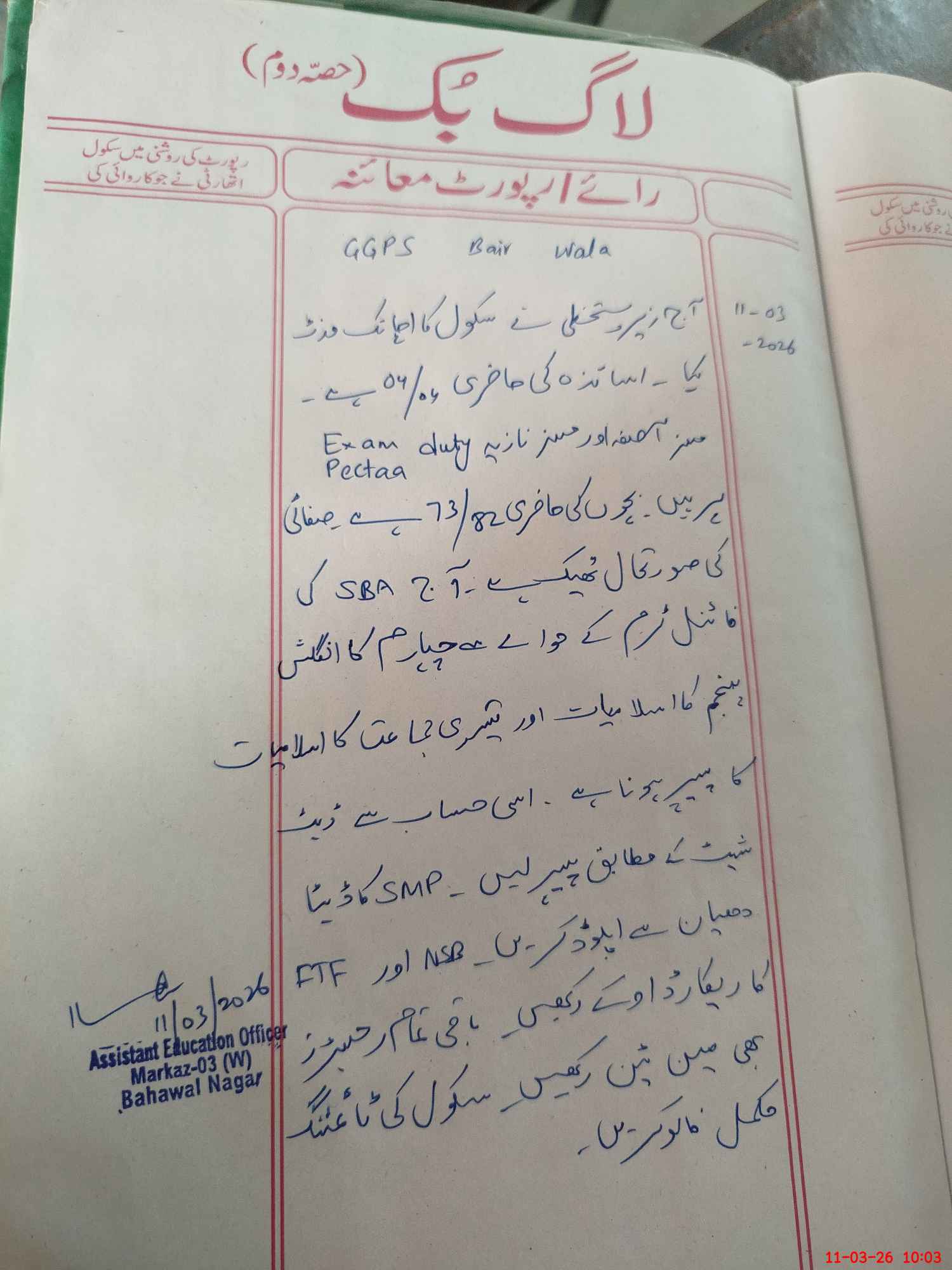 | EMIS Code: 31110459 | Name of School: GGPS BAIR WALA NO.1 | |||