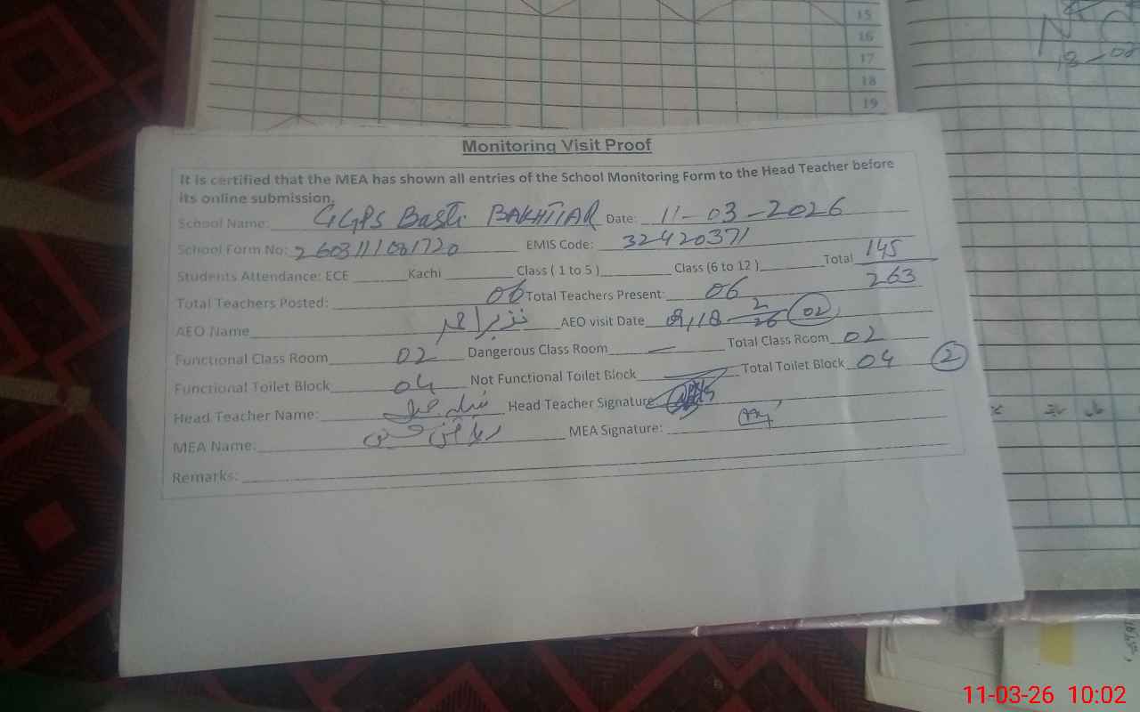 | EMIS Code: 32420371 | Name of School: GGPS BASTI BAKHTIAR | |||