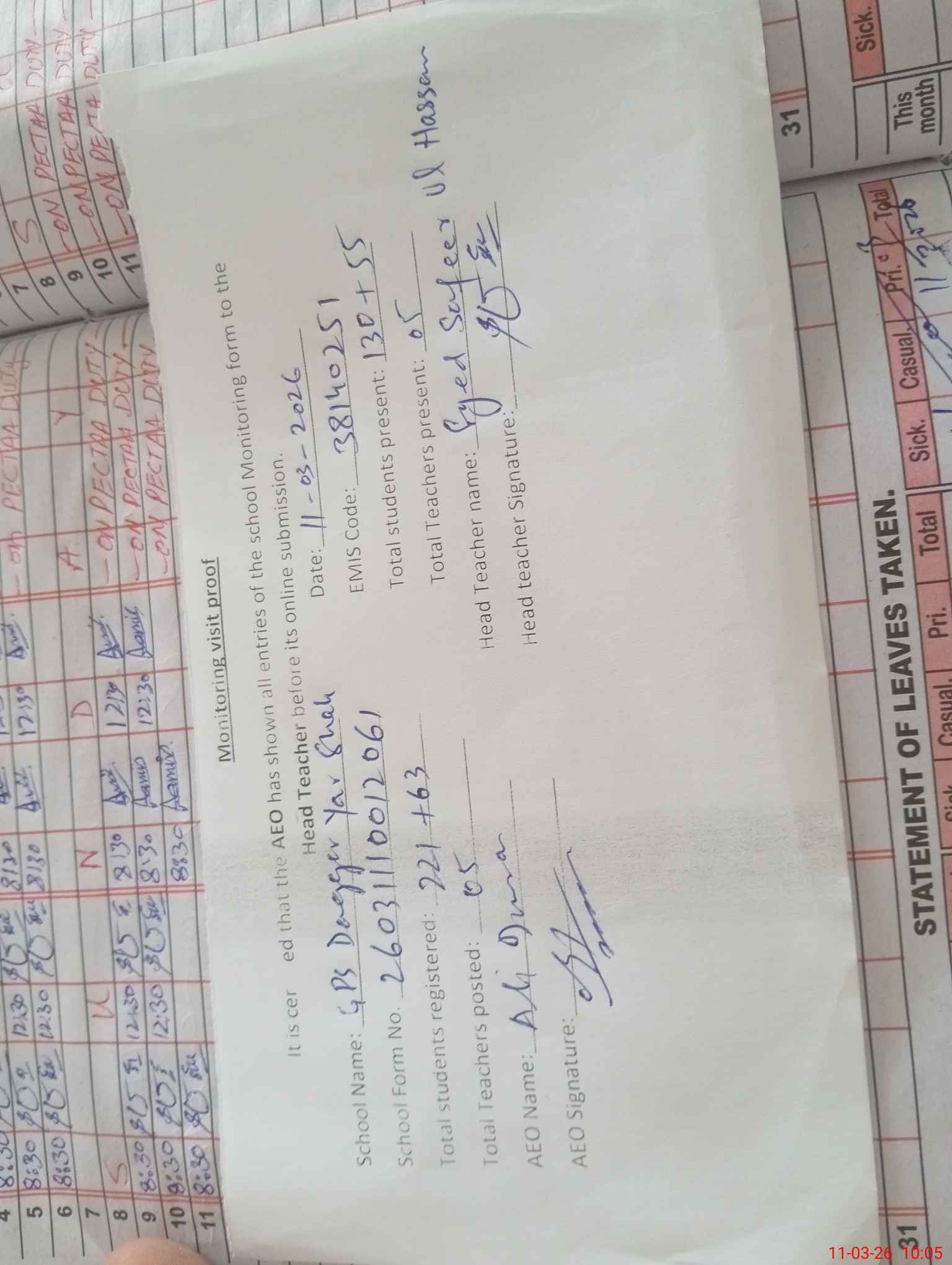 | EMIS Code: 38140251 | Name of School: GPS DAGGAR YAR SHAH | |||