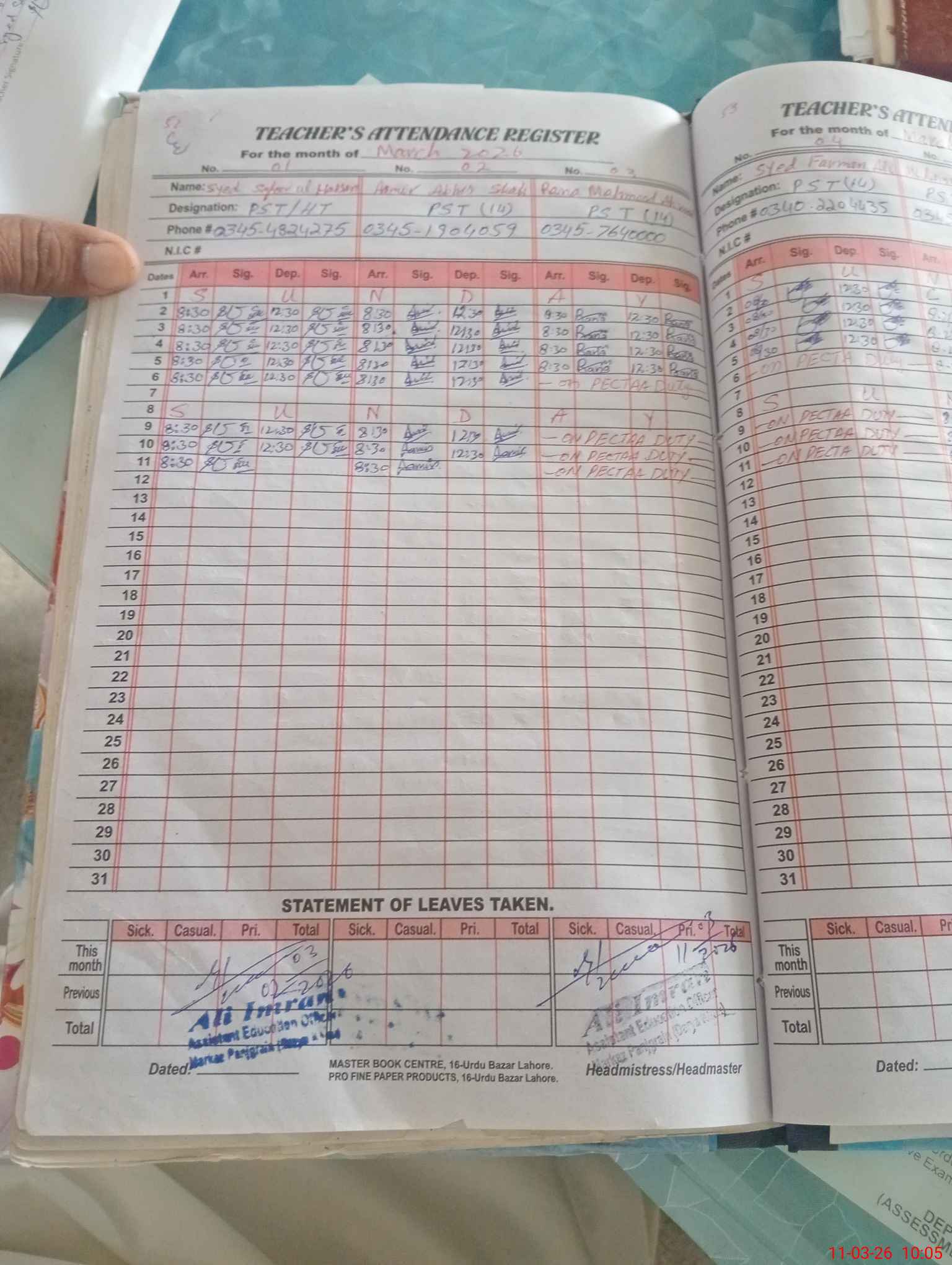 | Name: Sy**** Sa**** UlHa**** Designation: (School Headmaster's/Headmistress's) PST HEAD Phone/Cell Number: 03**** |
