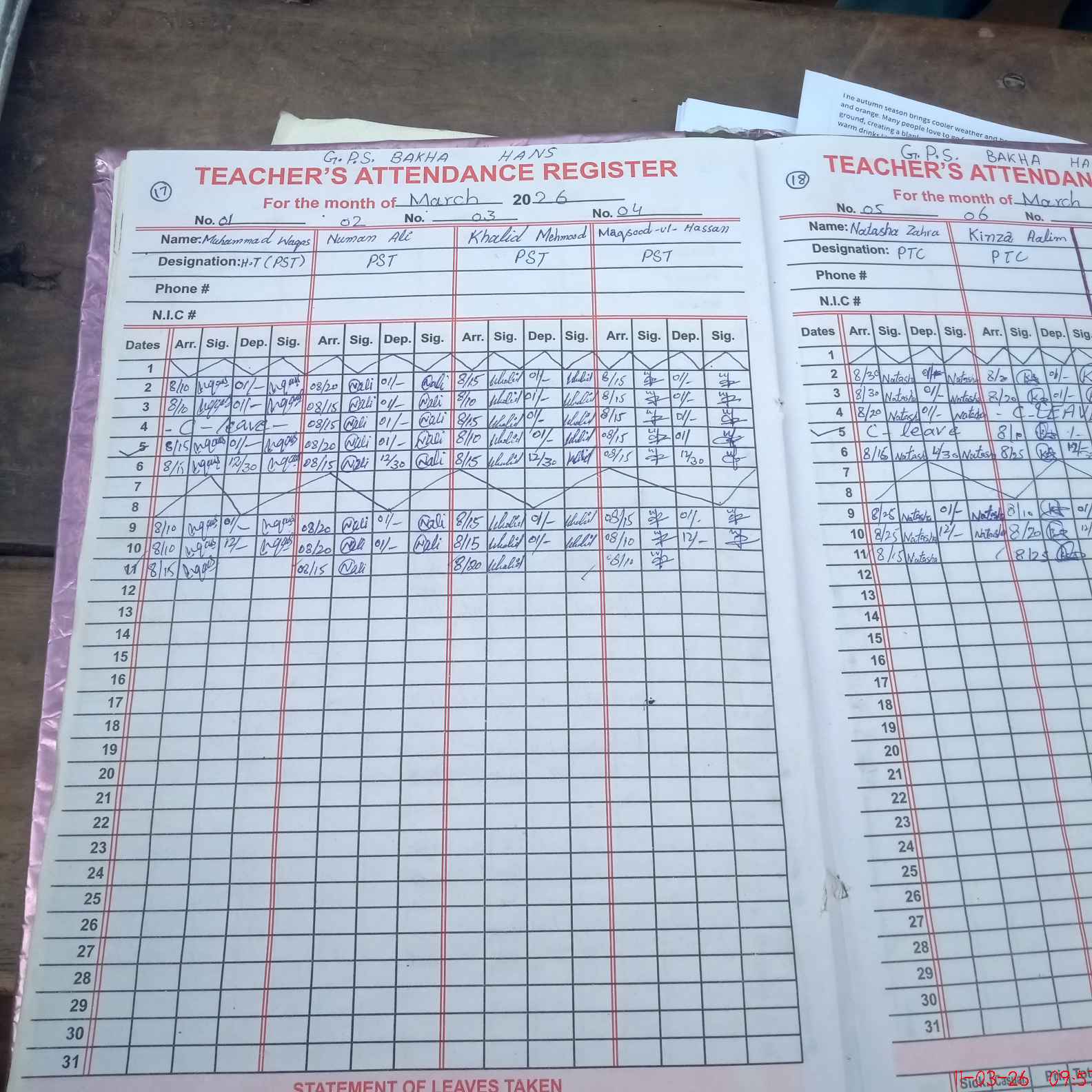 | Name: MU**** WA**** Designation: (School Headmaster's/Headmistress's) PST Phone/Cell Number: 03**** |