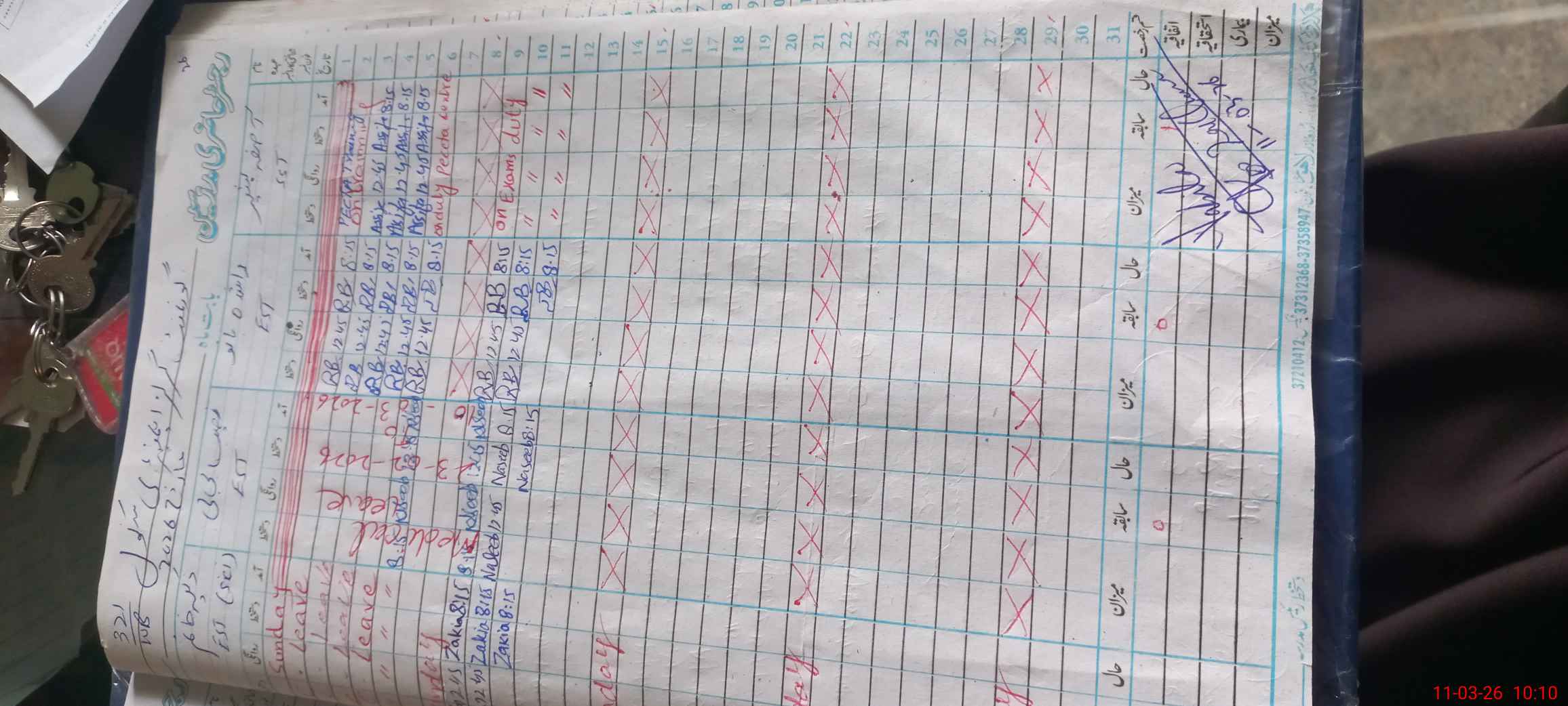| Leave | Duty | Absent | Maternity | Medical | Ex- Pak |
