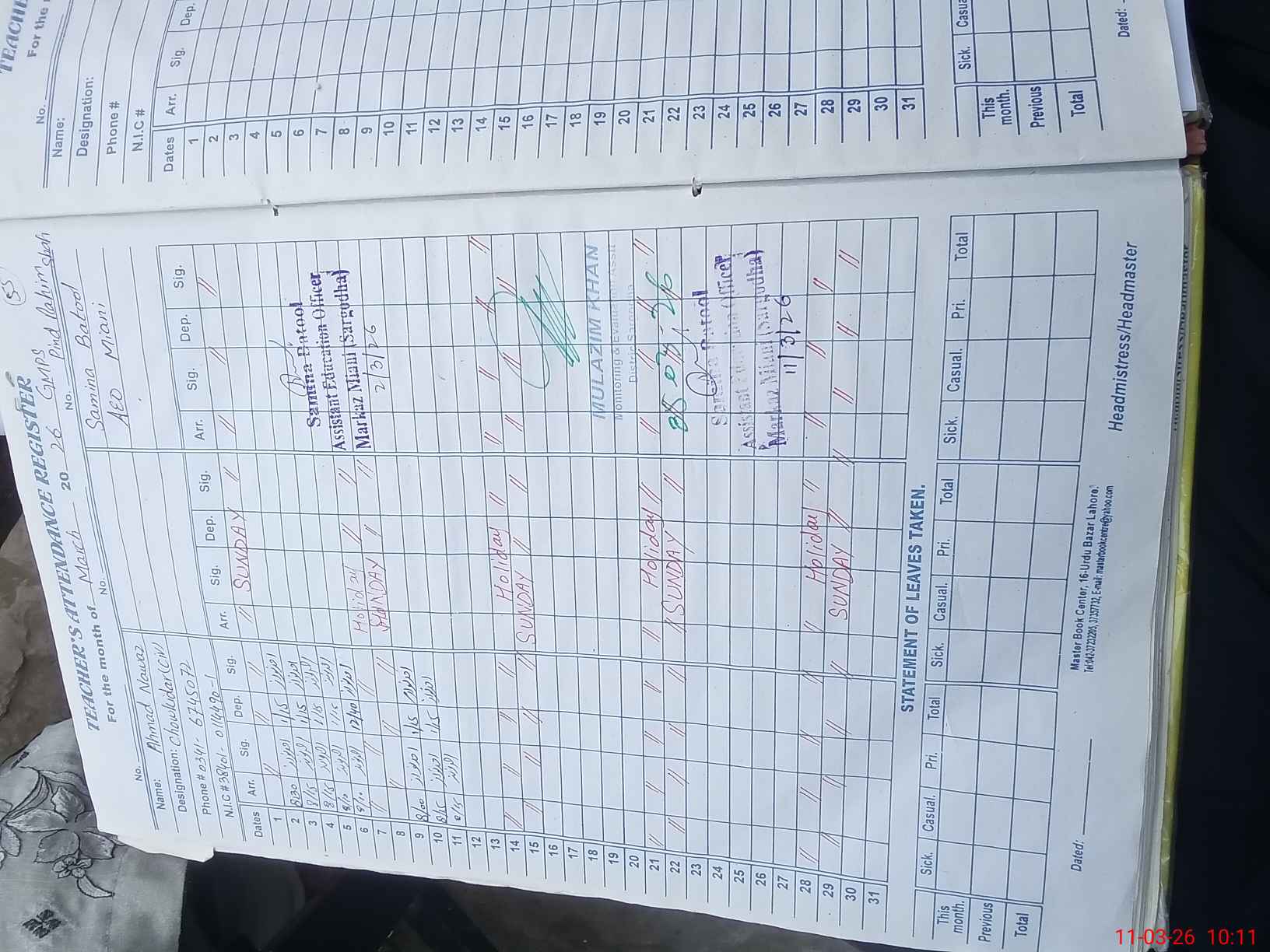 | Name: Na**** Pe**** Designation: (School Headmaster's/Headmistress's) PST Phone/Cell Number: 03**** |