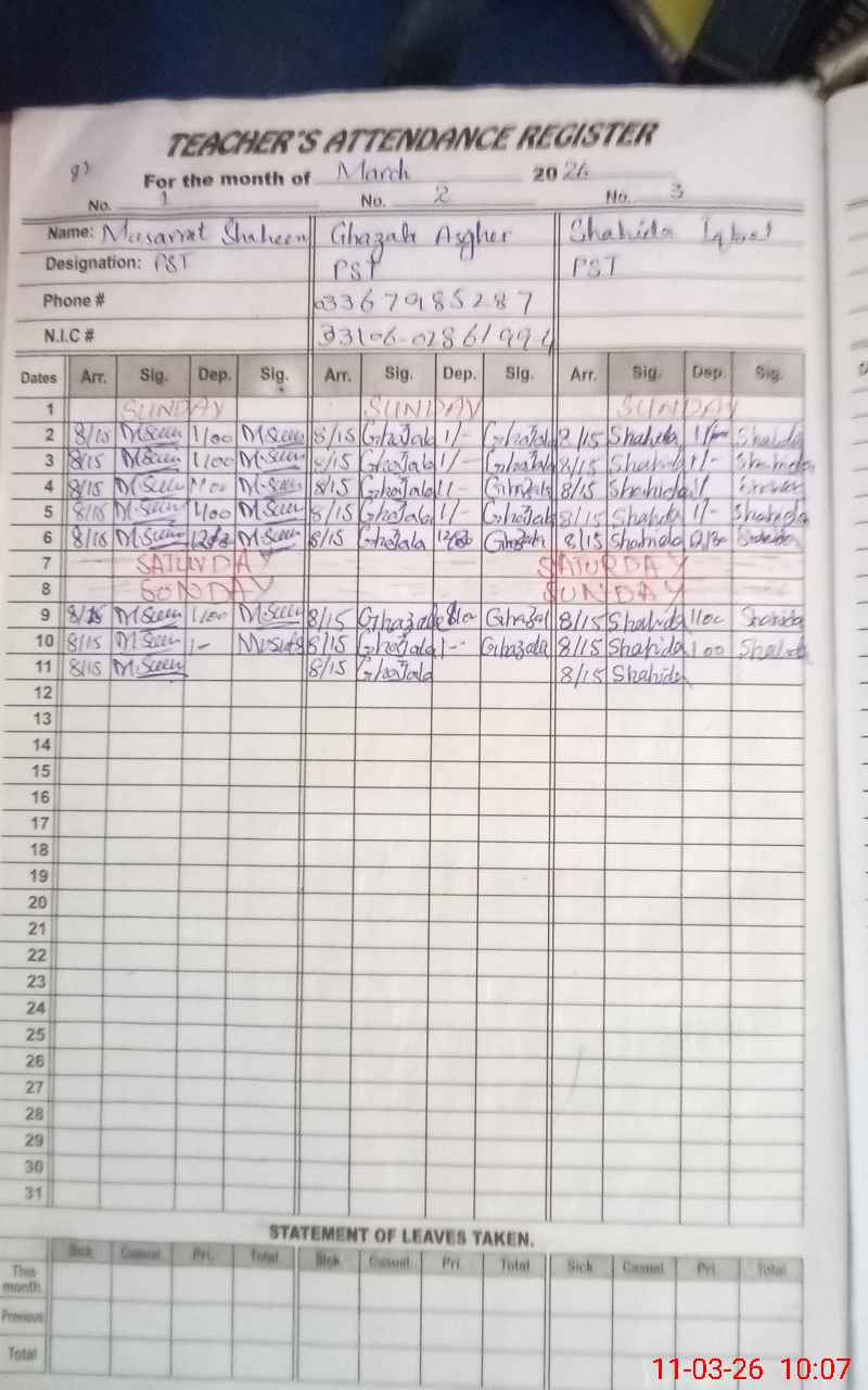 | 36**** | Iz**** Pa**** | PST Arts | Regular | 0 | 0 | 0 | 0 | 0 | 0 | 0 | 0 | 0 | Exam Duty |