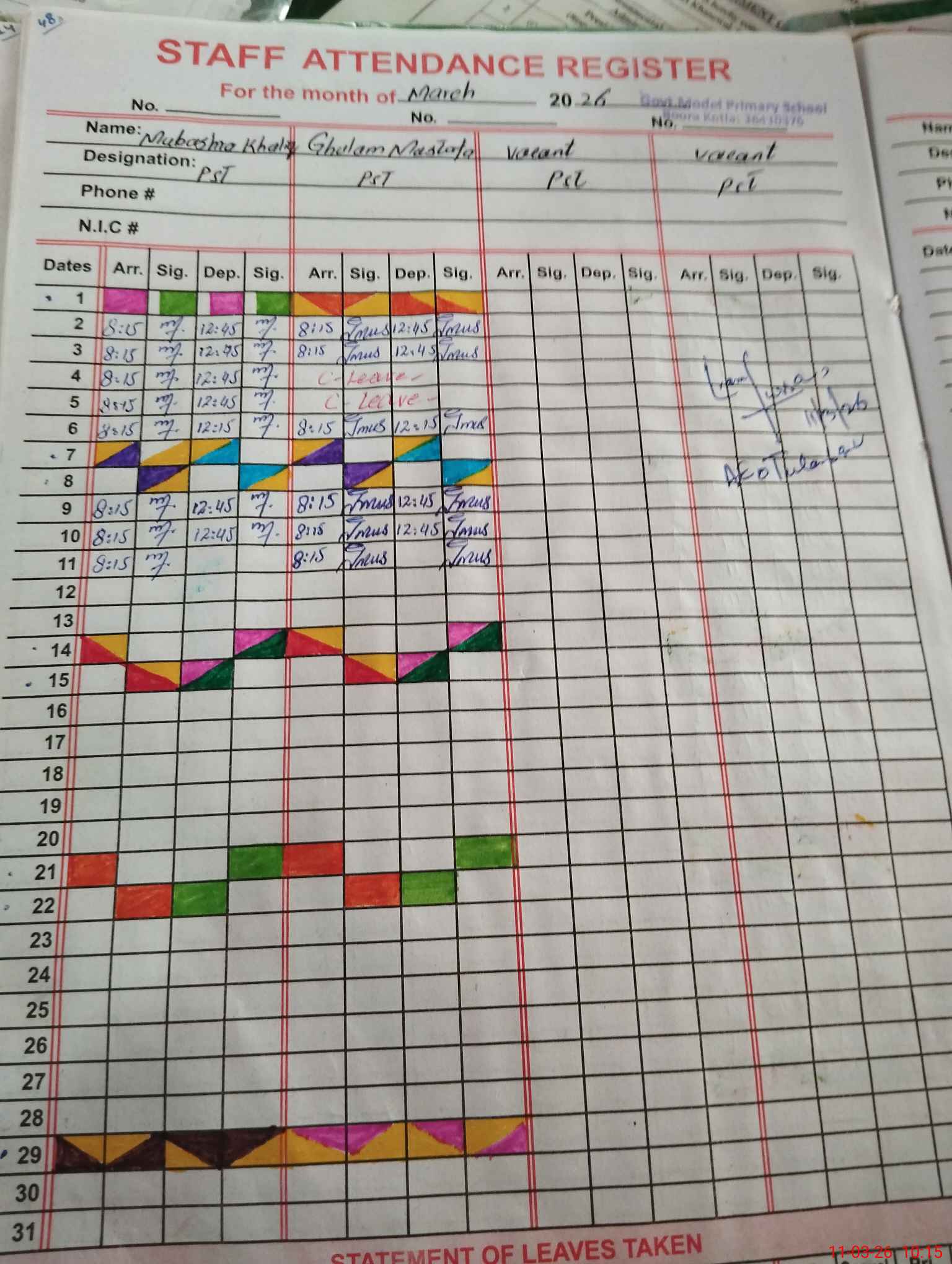 | Name: MU**** KH**** Designation: (School Headmaster's/Headmistress's) PST Phone/Cell Number: 03**** |