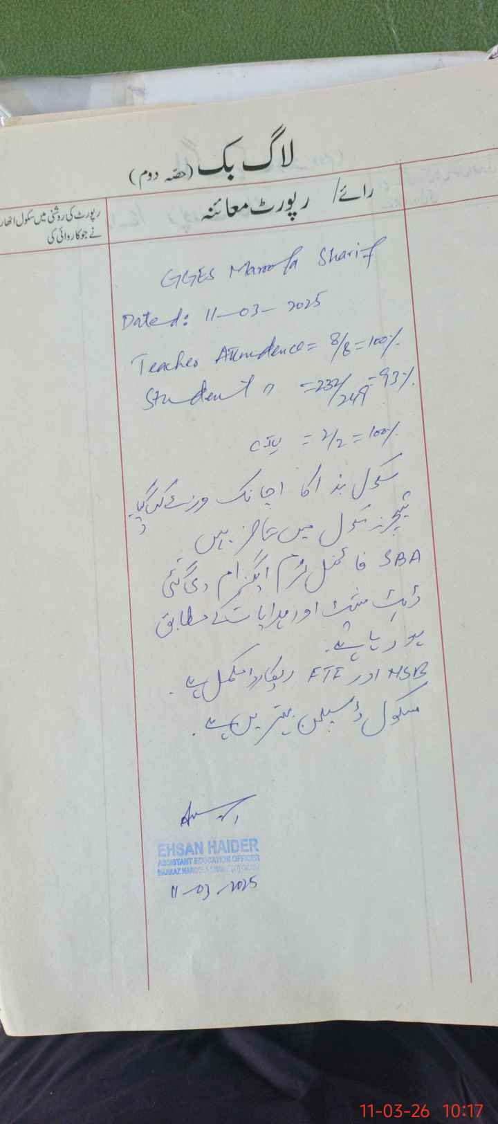 | EMIS Code: 39320597 | Name of School: GGES MAROOLA SHARIF | |||