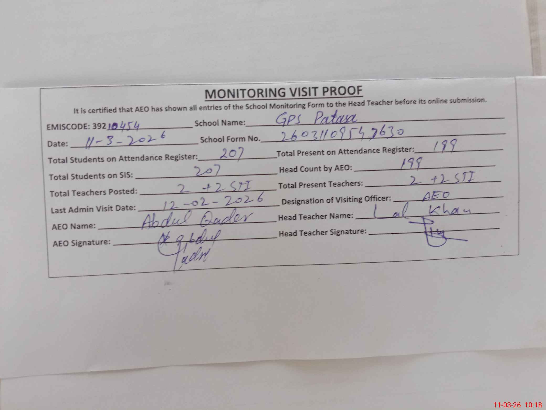 | EMIS Code: 39210454 | Name of School: GPS PATASA P/O DHUPAI | |||