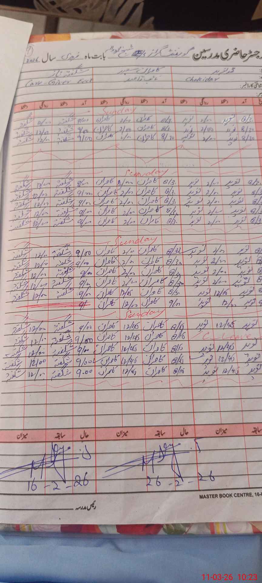 | CNIC | Full Name | Designation | R/C | Absence During Last Calender Month |