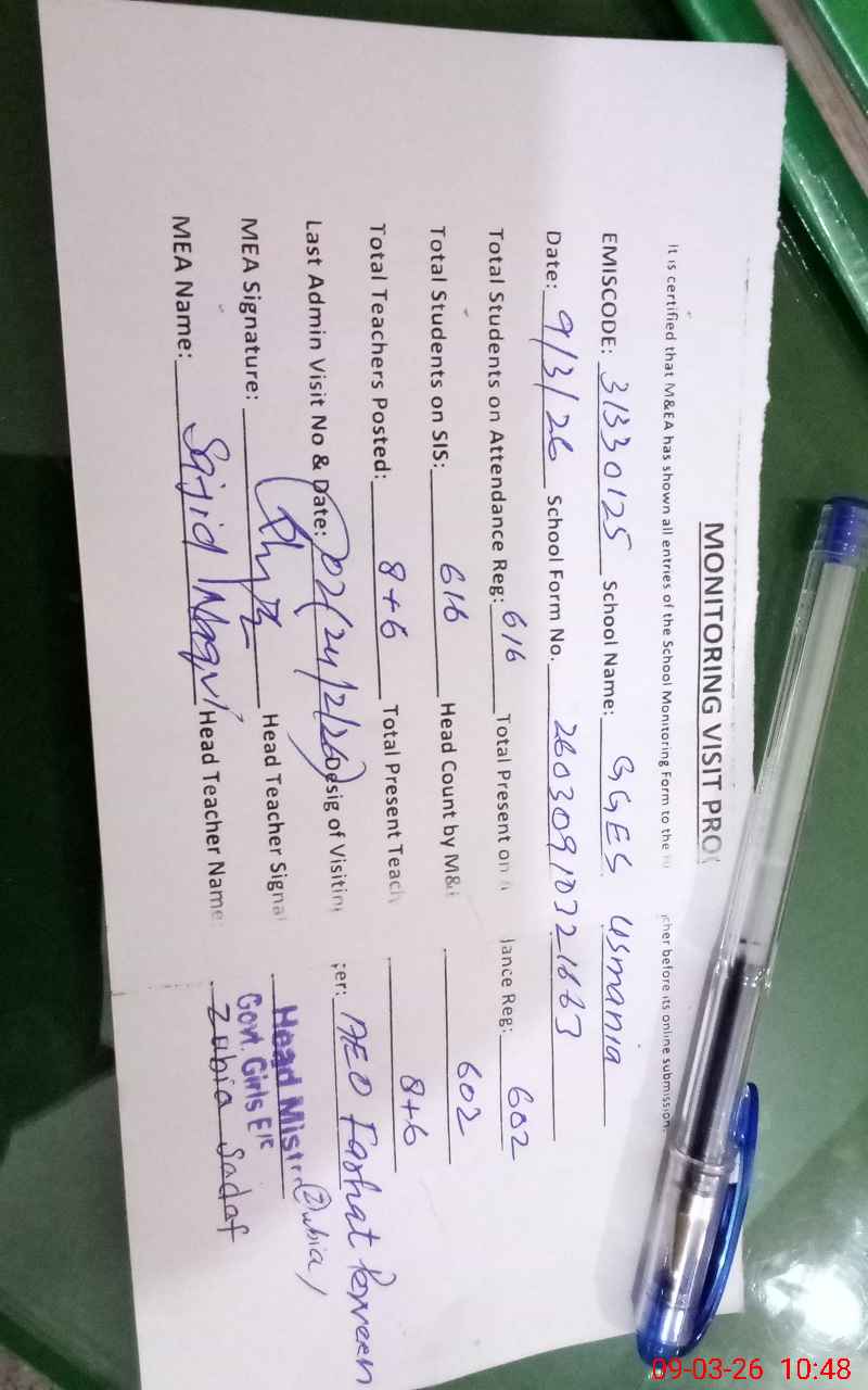 | EMIS Code: 31330125 | Name of School: GGES USMANIA | |||