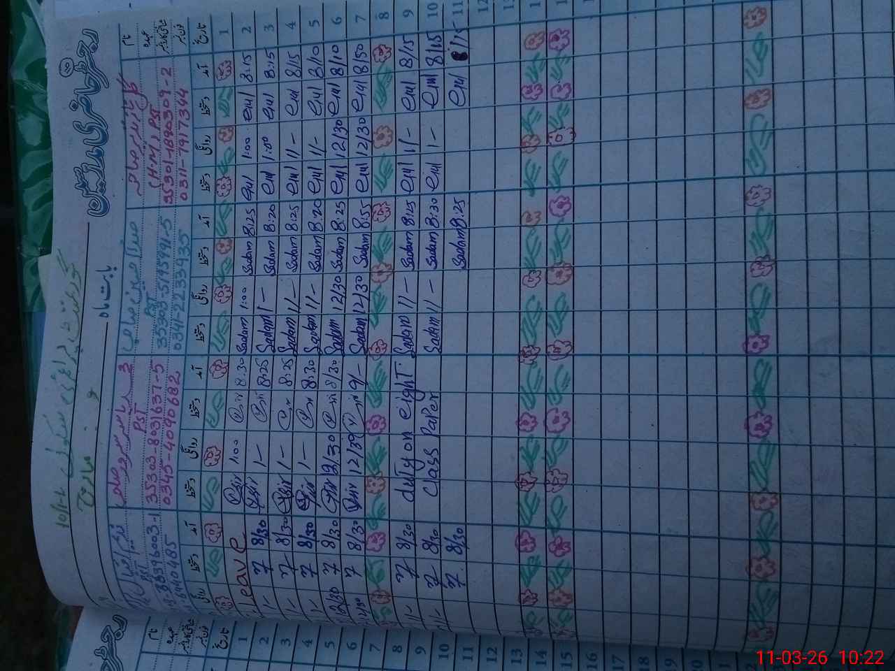| Leave | Duty | Absent | Maternity | Medical | Ex- Pak |