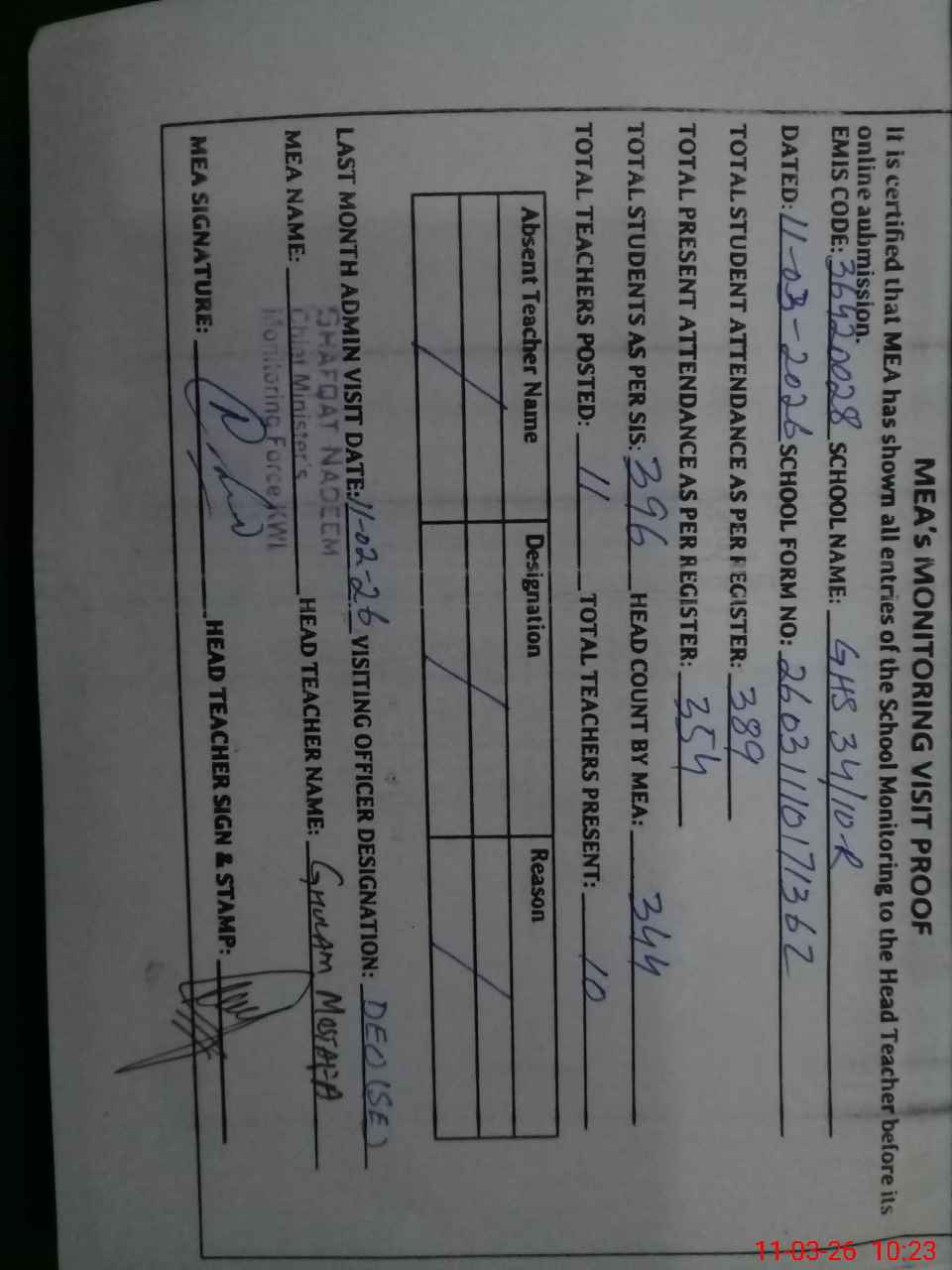 | EMIS Code: 36420028 | Name of School: GHS 34/10-R, KACHA KHUH | |||
