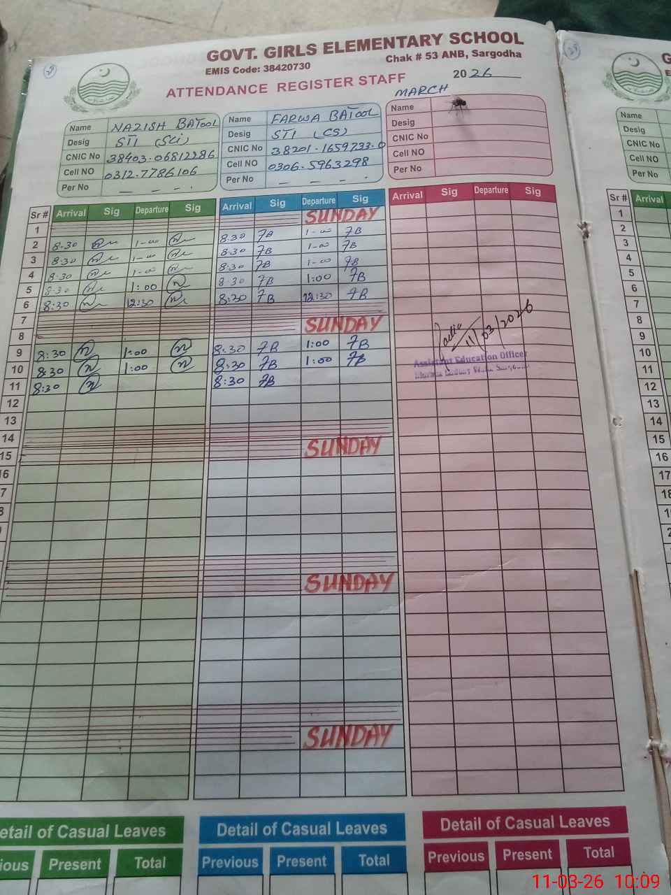| CNIC | Full Name | Designation | R/C | Absence During Last Calender Month |