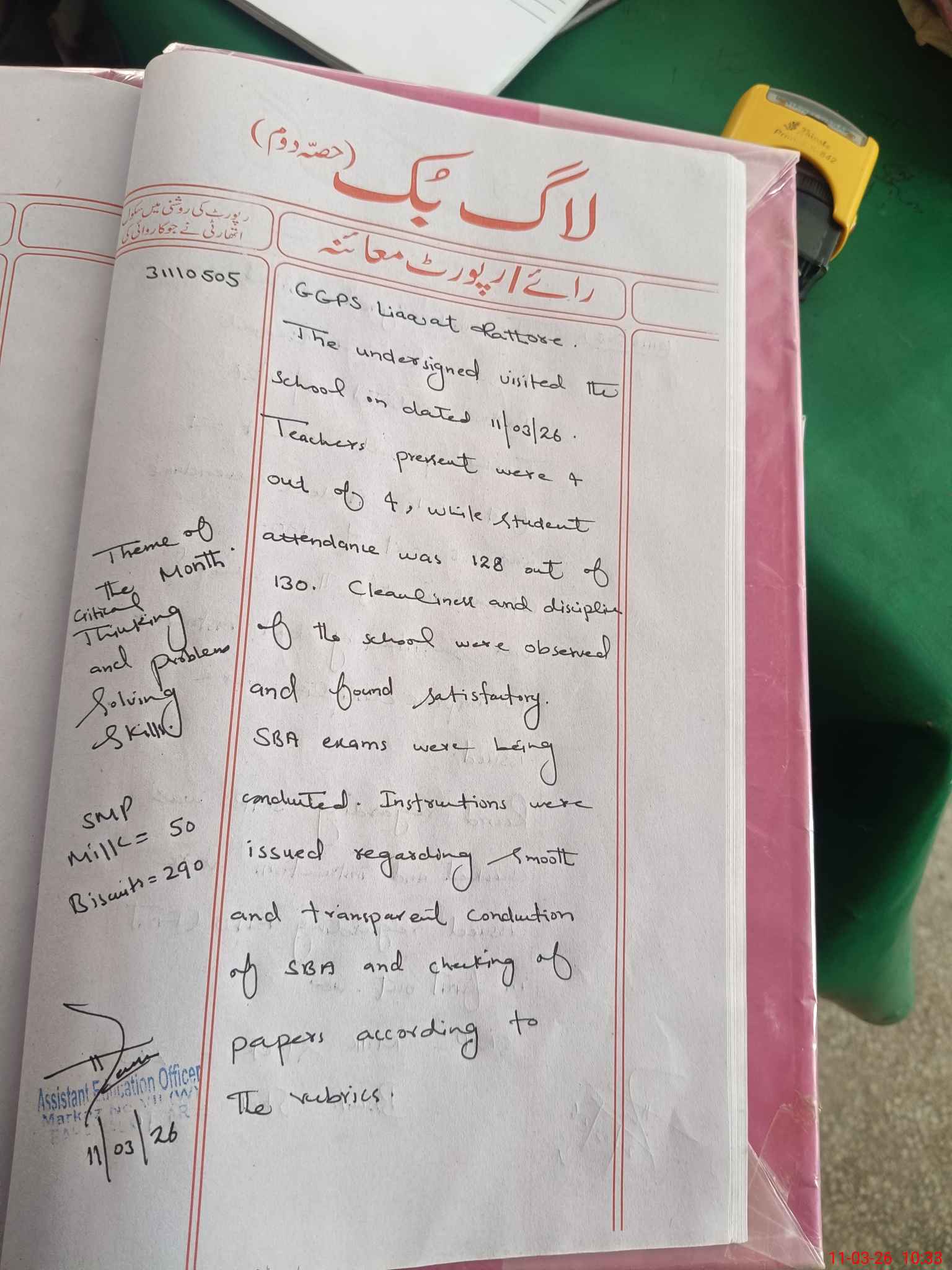 | Certified that this School was Inspected by the Undersigned MEA/DMO Today and the Information Stated Above is as Per Record. | |||||