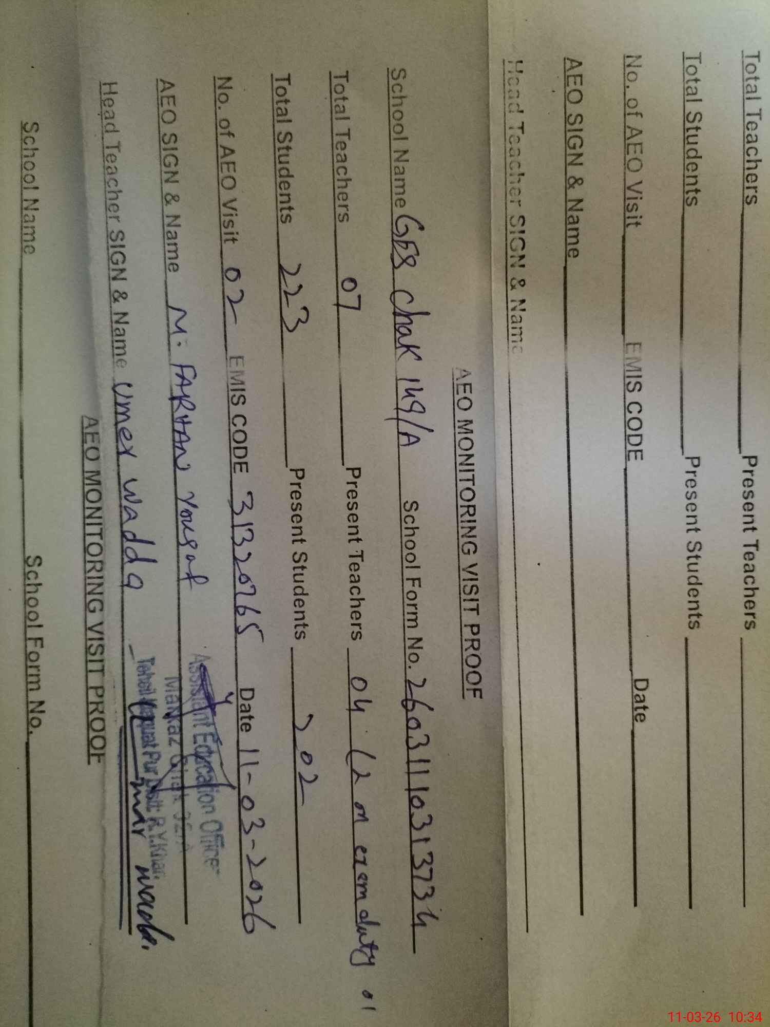 | EMIS Code: 31320765 | Name of School: GES CHAK NO. 149/A | |||
