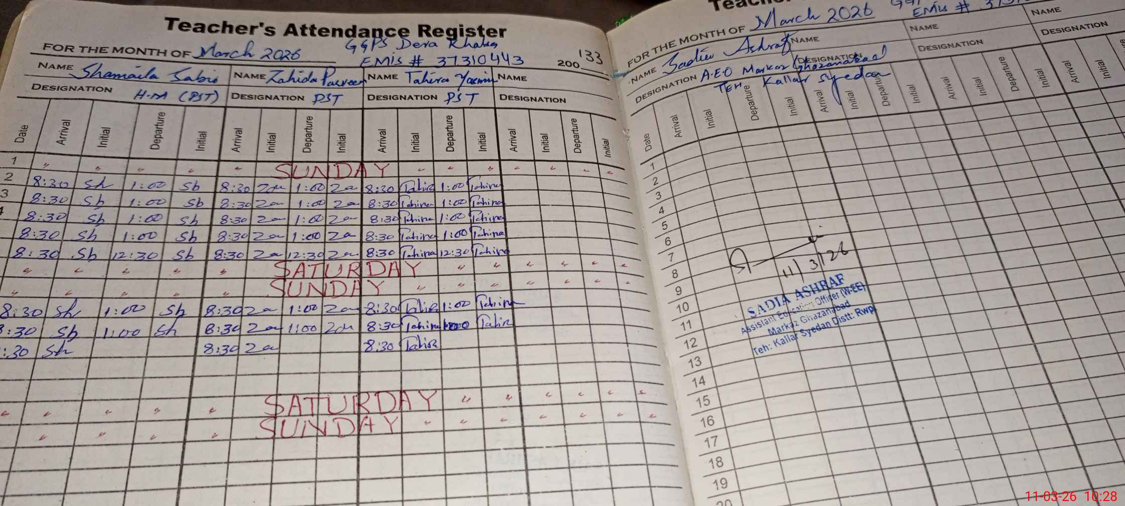 | Name: Sh**** Sa**** Designation: (School Headmaster's/Headmistress's) PST Phone/Cell Number: 03**** |