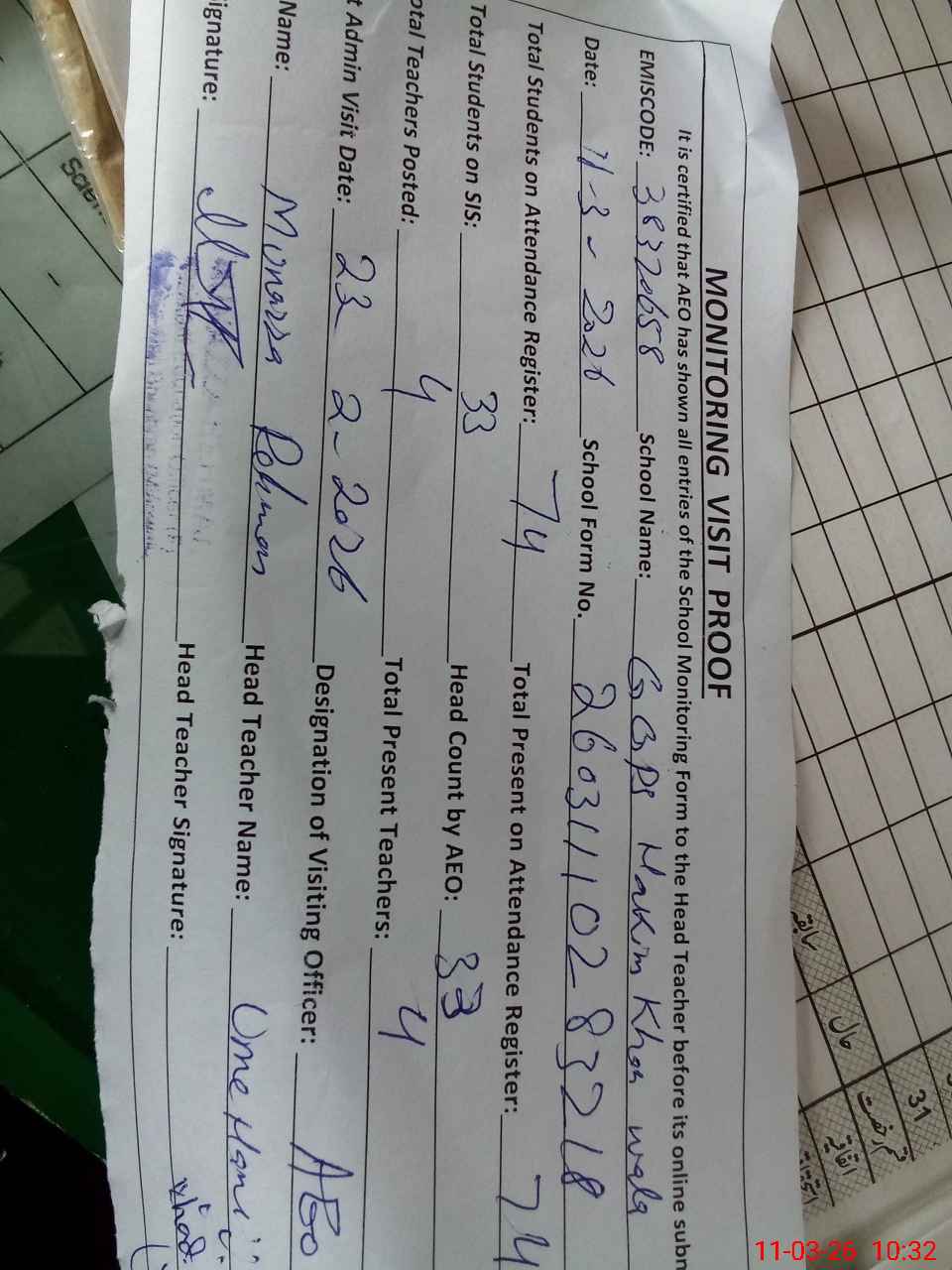 | EMIS Code: 38320658 | Name of School: GGPS HAKIM KHAN WALA | |||