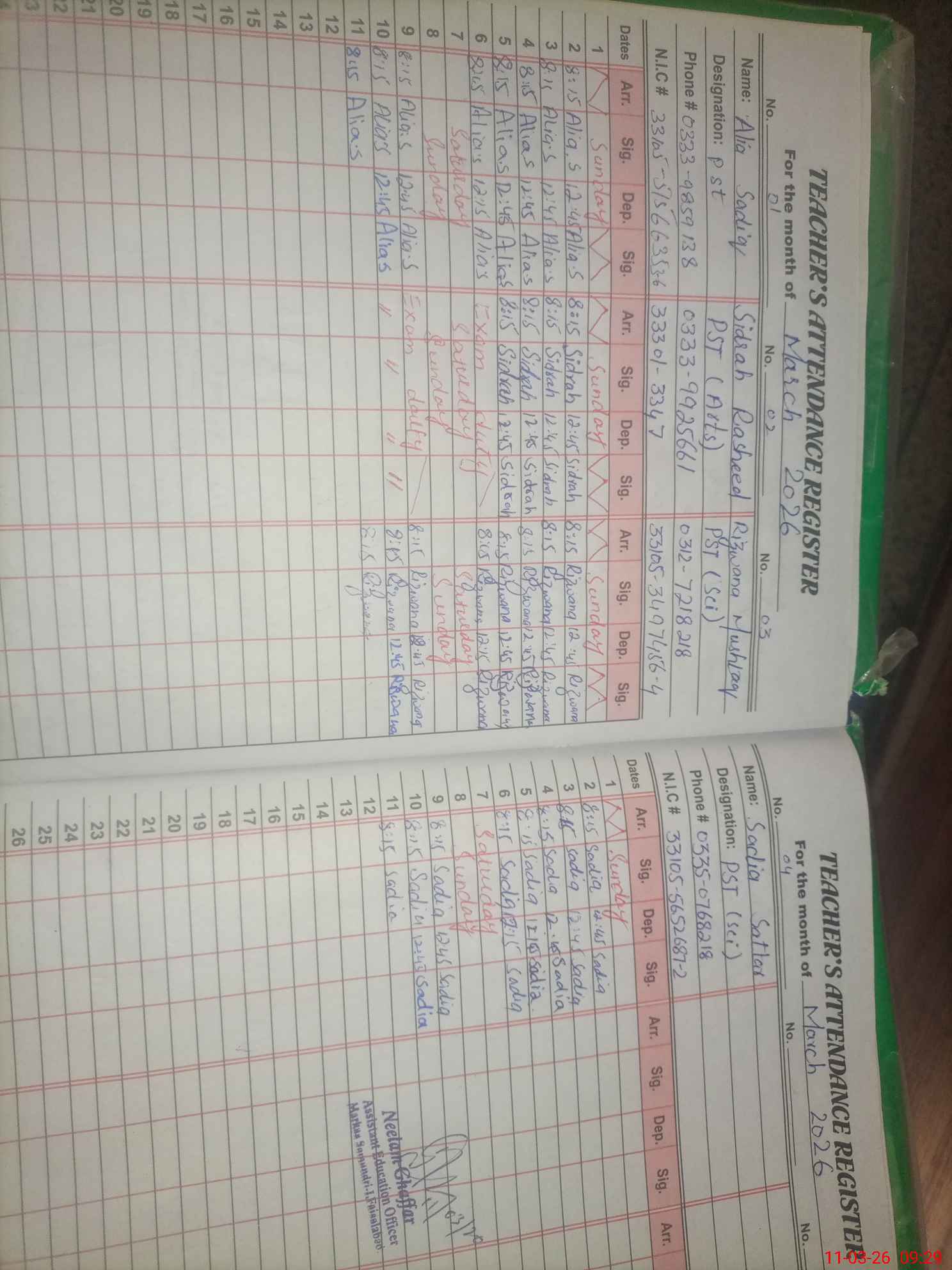 | Name: AL**** SA**** Designation: (School Headmaster's/Headmistress's) PST Phone/Cell Number: 03**** |