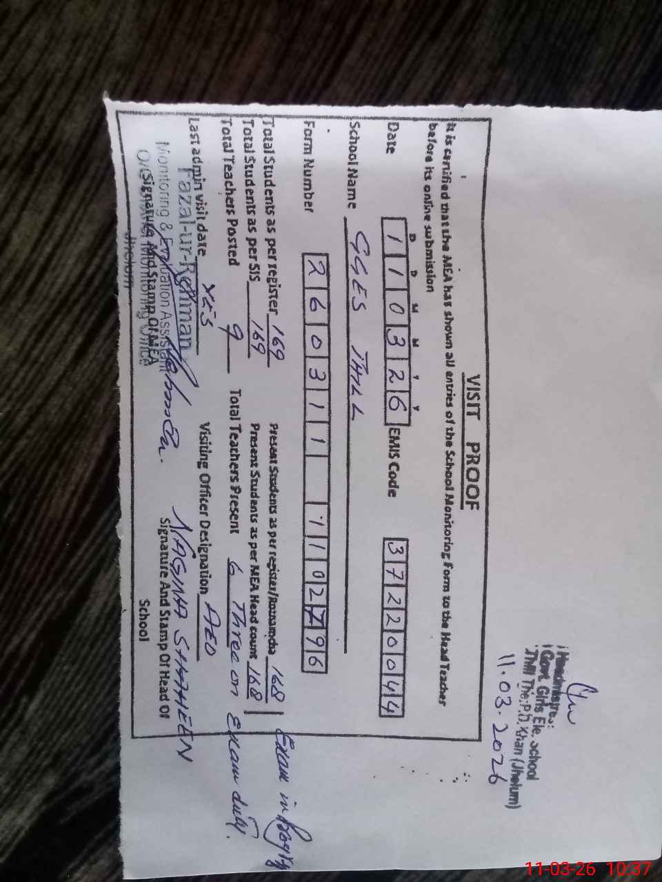 | Certified that this School was Inspected by the Undersigned MEA/DMO Today and the Information Stated Above is as Per Record. | |||||