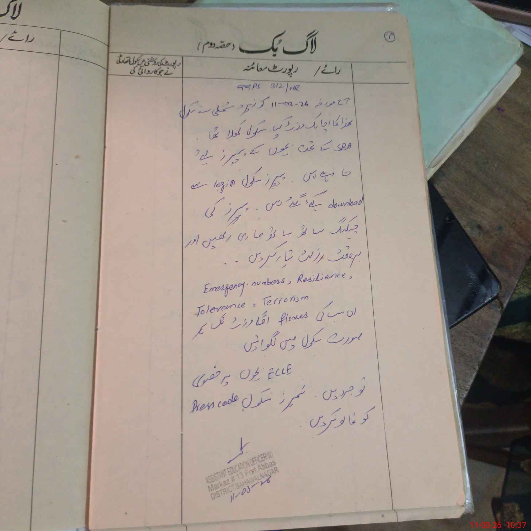 | EMIS Code: 31130330 | Name of School: GGPS CHAK NO. 312 HR | |||