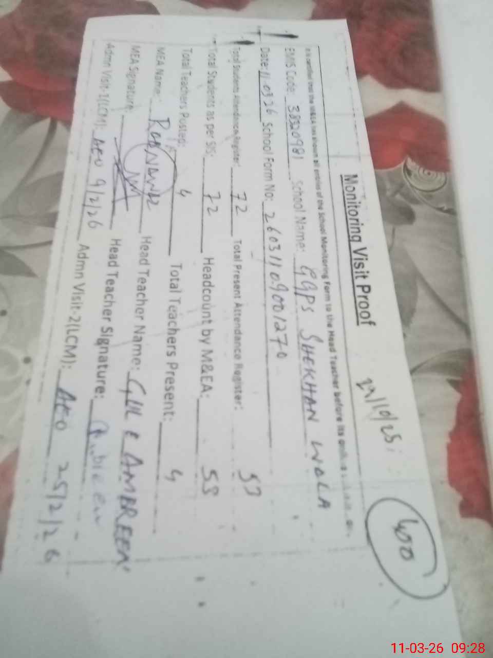 | EMIS Code: 38320981 | Name of School: GGPS SHEIKHAN WALA | |||
