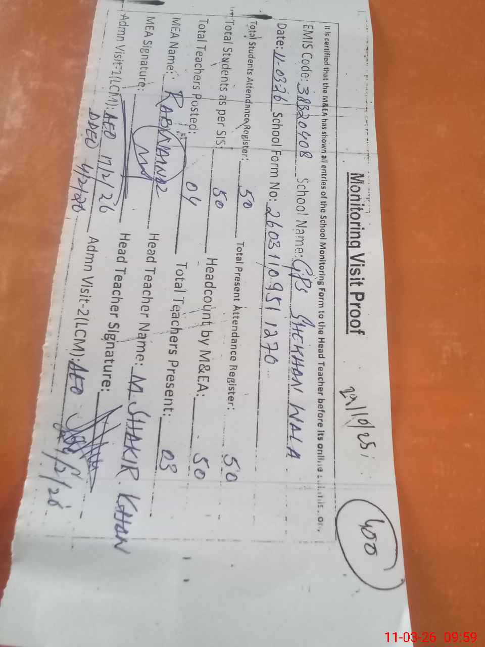 | EMIS Code: 38320408 | Name of School: GPS SHEIKHAN WALA | |||