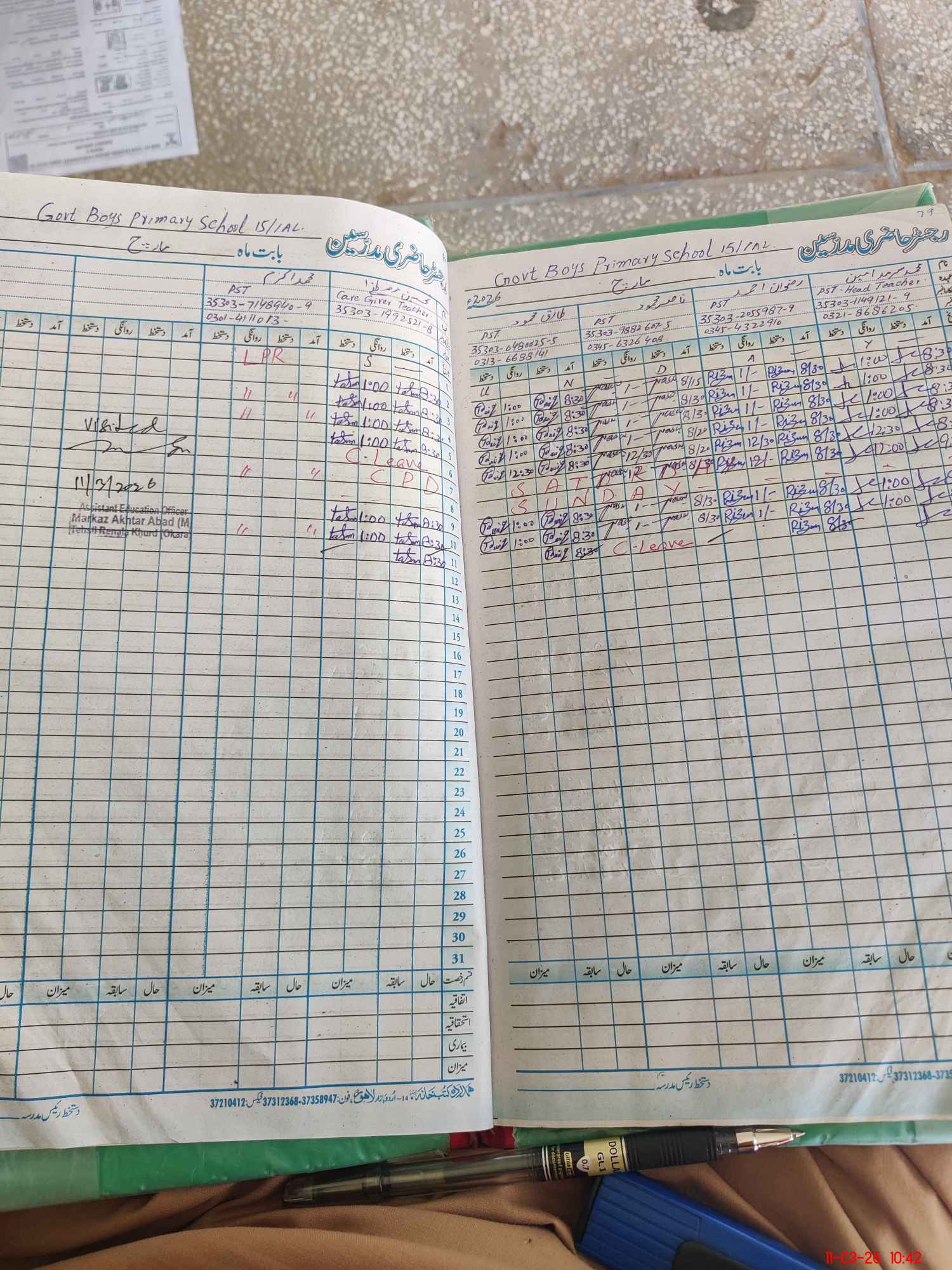 | Leave | Duty | Absent | Maternity | Medical | Ex- Pak |