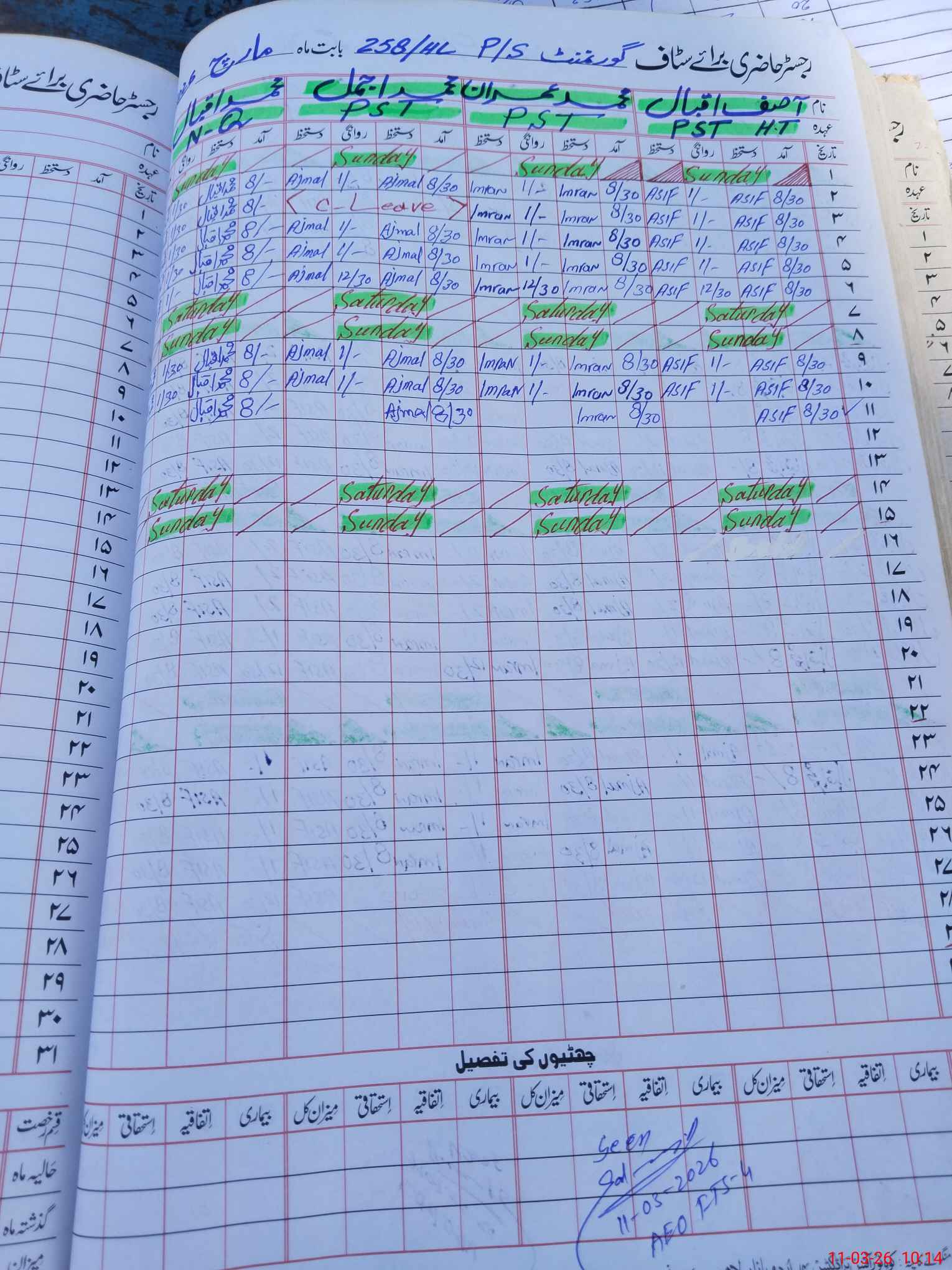 | Name: As**** Iq**** Designation: (School Headmaster's/Headmistress's) PST Phone/Cell Number: 03**** |