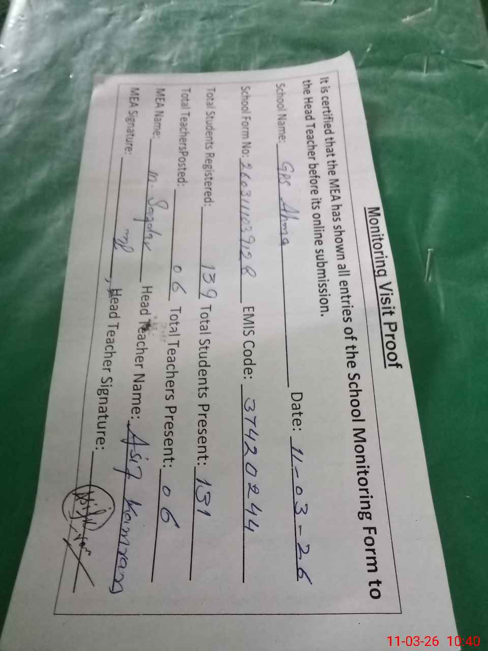 | EMIS Code: 37420244 | Name of School: GPS AHMA | |||