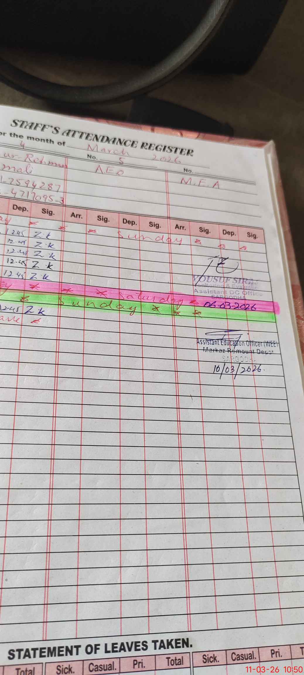 | Leave | Duty | Absent | Maternity | Medical | Ex- Pak |