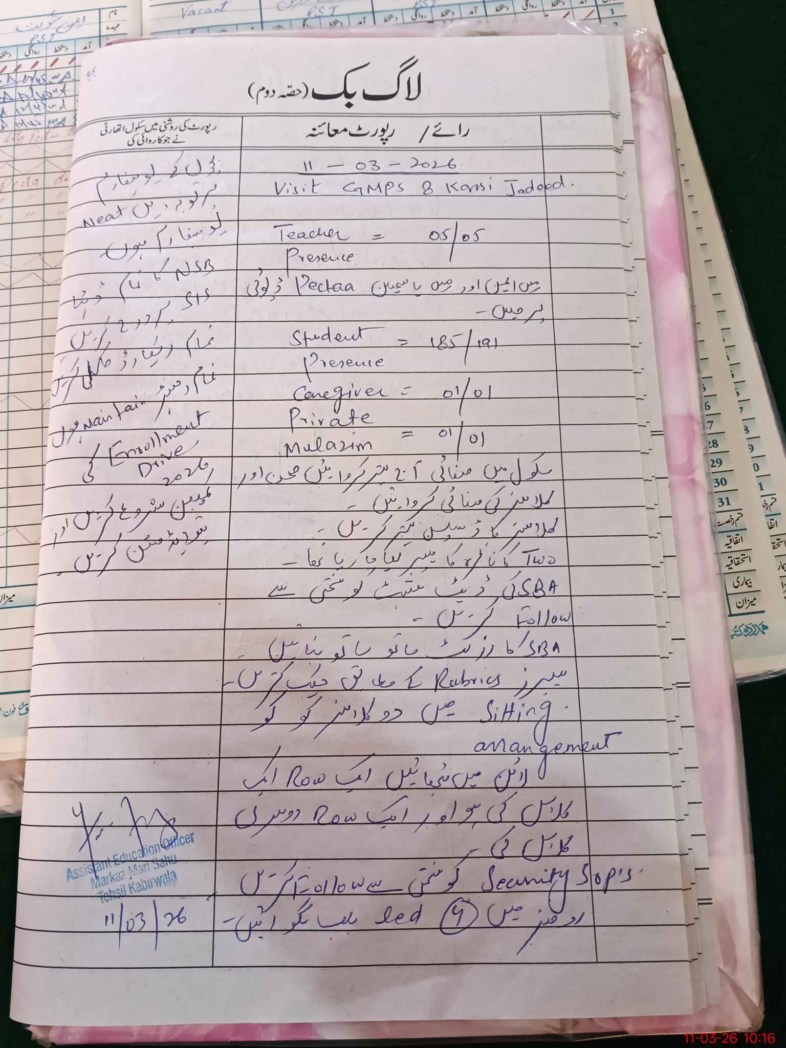 | Certified that this School was Inspected by the Undersigned MEA/DMO Today and the Information Stated Above is as Per Record. | |||||