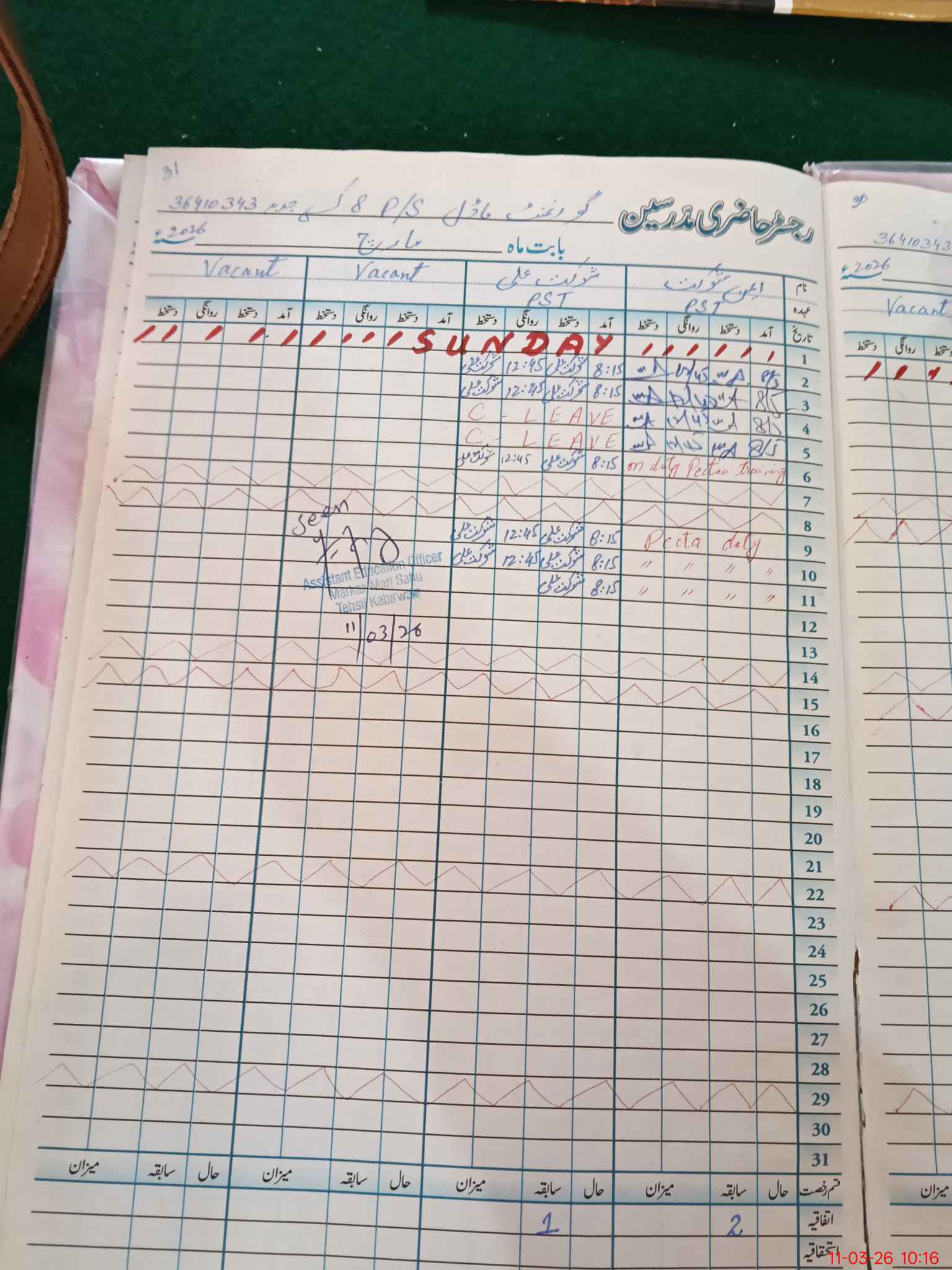 | 36**** | Ya**** Ak**** | PST Arts | Regular | 0 | 0 | 0 | 0 | 0 | 0 | 0 | 0 | 0 | Exam Duty |