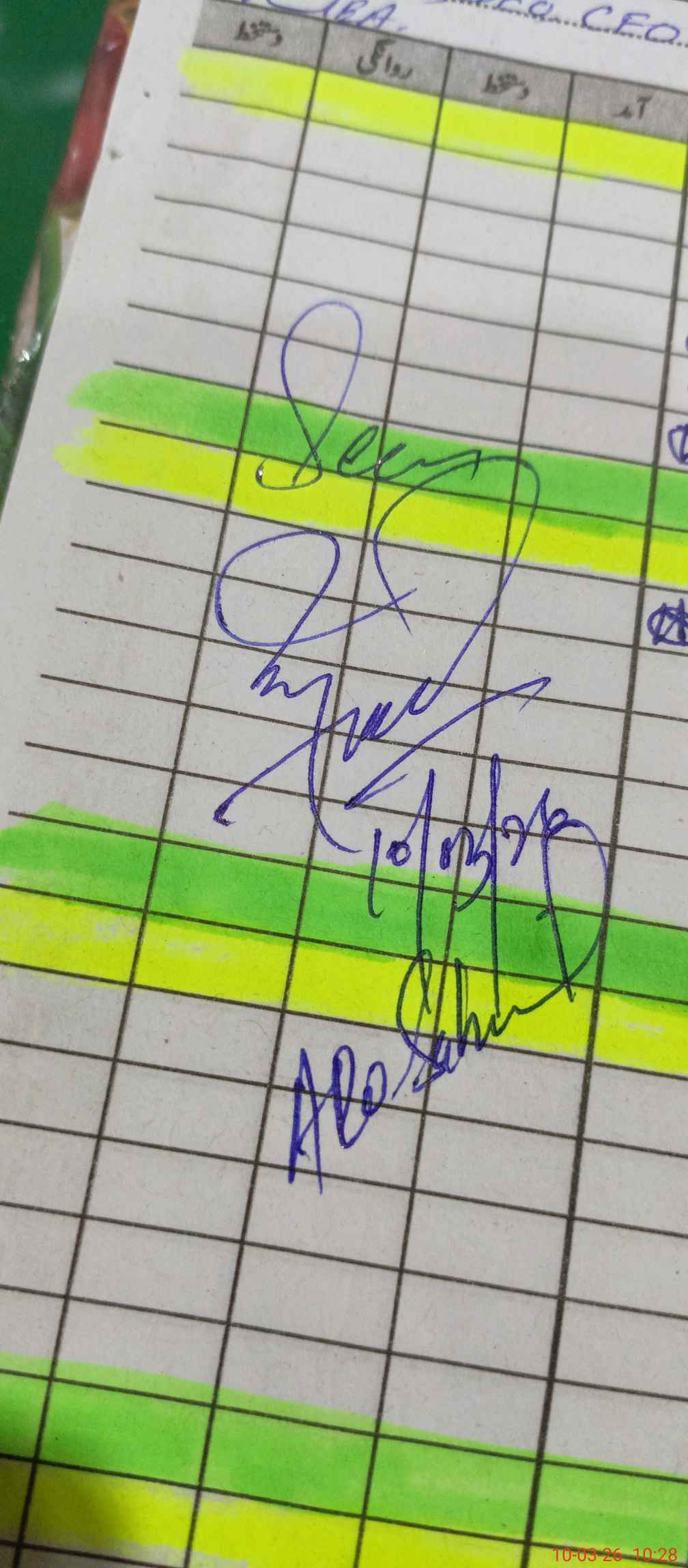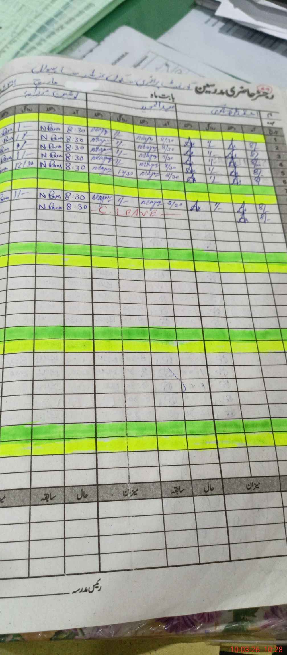 | CNIC | Full Name | Designation | R/C | Absence During Last Calender Month |