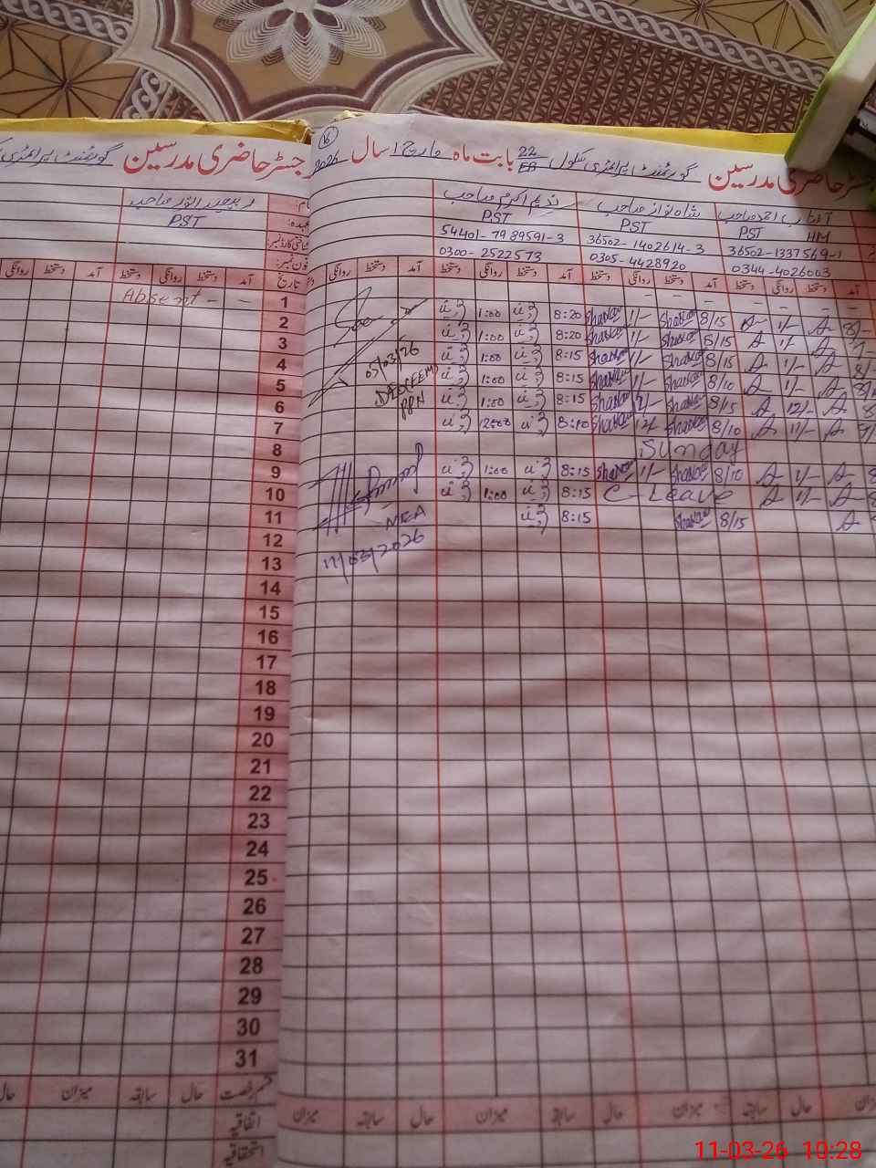 | Name: AF**** AH**** Designation: (School Headmaster's/Headmistress's) PST Phone/Cell Number: 03**** |