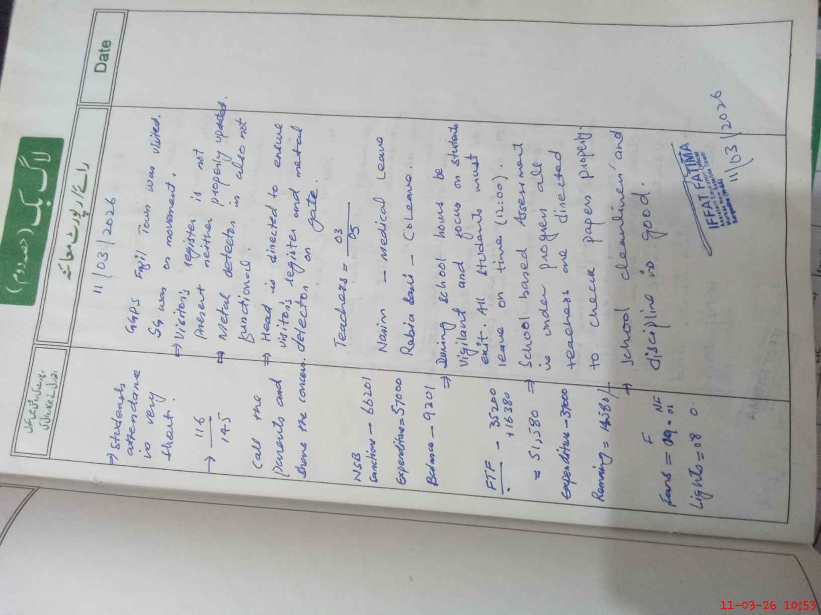 | Monitoring Date: 11-03-2026 | Start Time: 11-03-2026 10:29 AM | End Time: 11-03-2026 10:53 AM | Name of MEA: IF**** FA**** | |