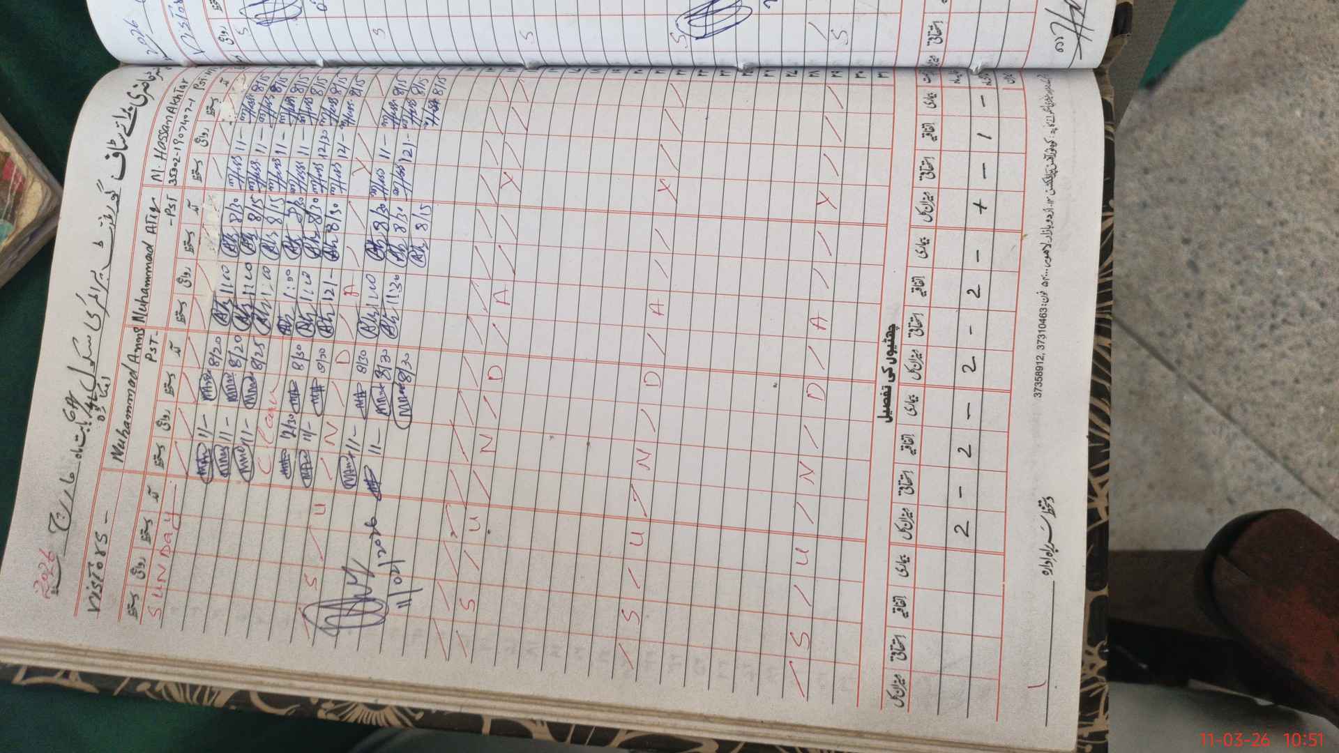 | CNIC | Full Name | Designation | R/C | Absence During Last Calender Month |