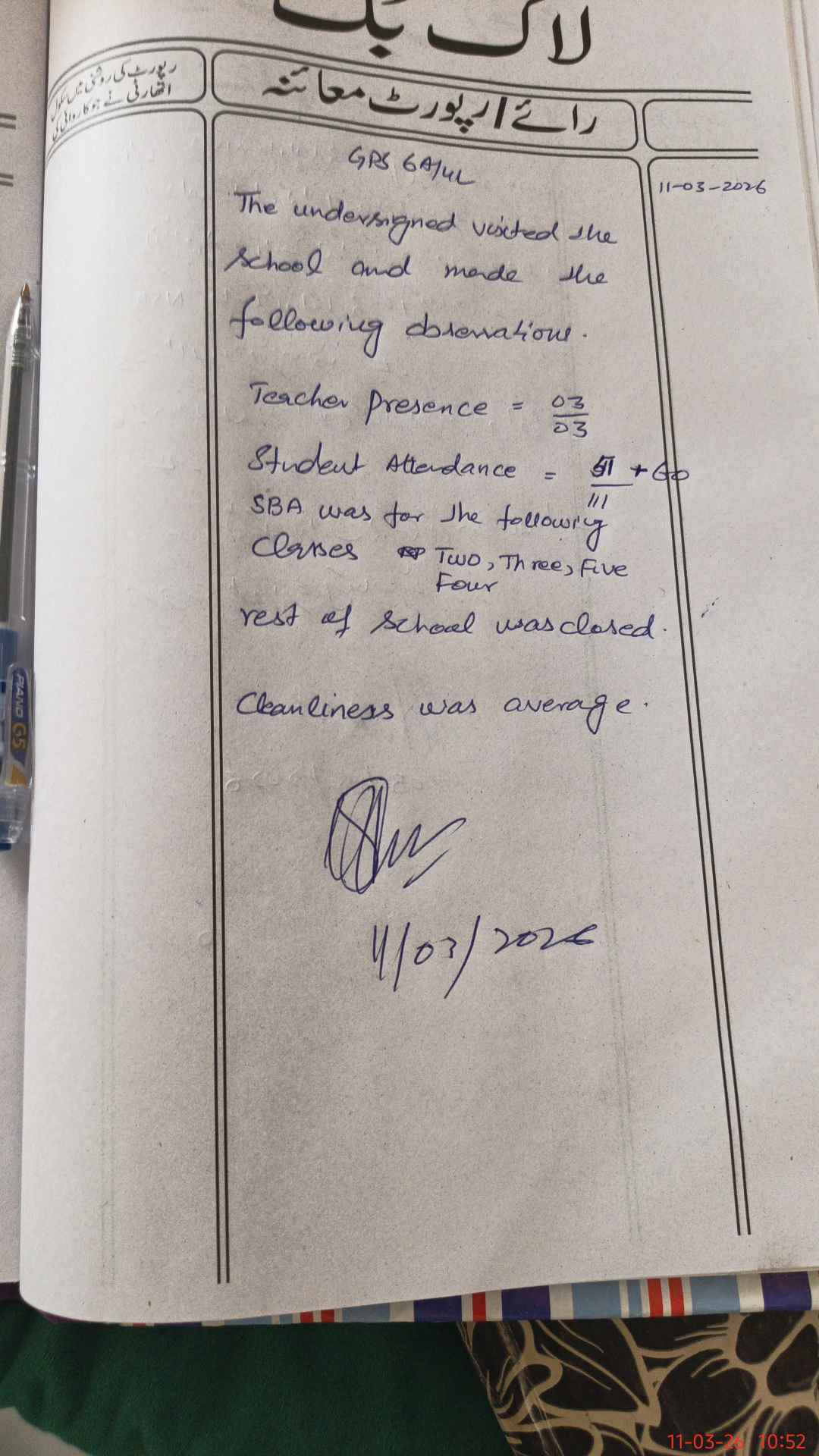 | Monitoring Date: 11-03-2026 | Start Time: 11-03-2026 10:35 AM | End Time: 11-03-2026 10:52 AM | Name of MEA: Mu**** Hu**** | |